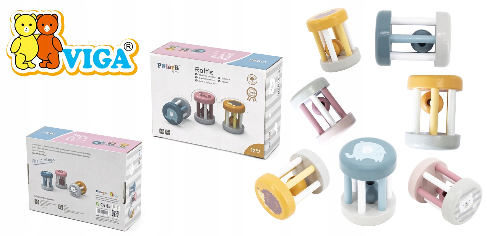 Дерев'яне брязкальце призначене для наших найменших одержувачів, які починають пізнавати світ. Іграшка в наявності трьох кольорів, зверху виробу намальовані три тварини.
