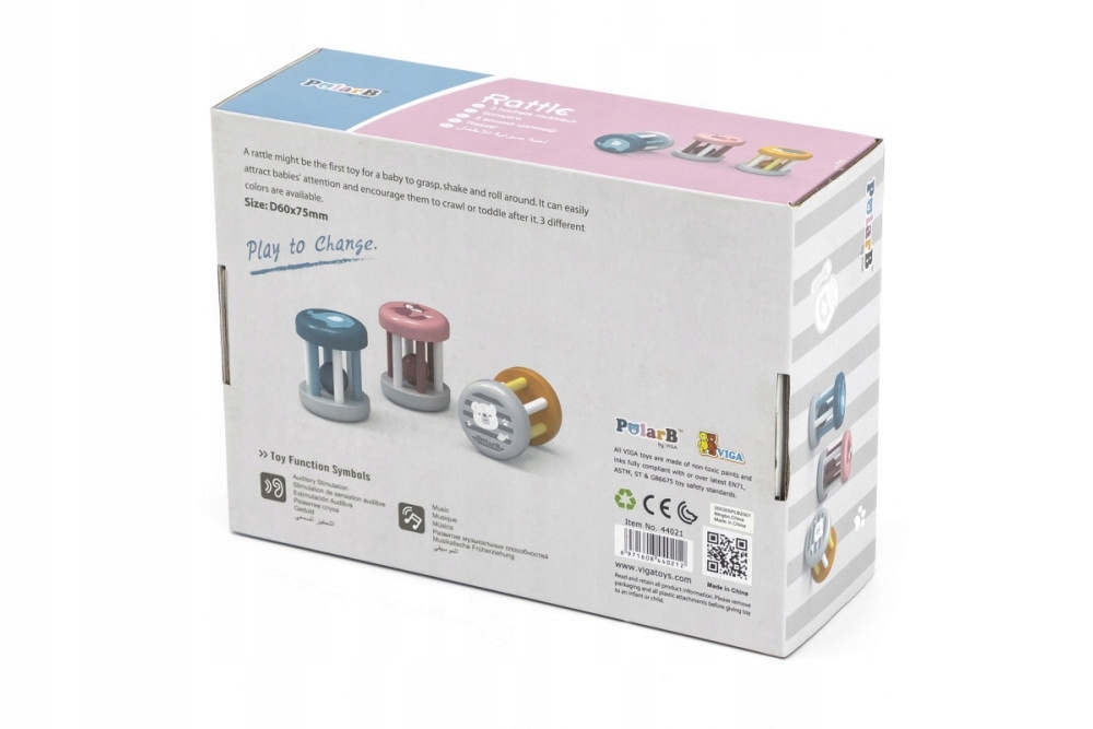 Красиві брязкальця з серії PolarB вирізняються пастельними кольорами та милими візерунками тварин. У нижній частині вони додатково прикрашені символом серії, тобто усміхненим ведмедиком.