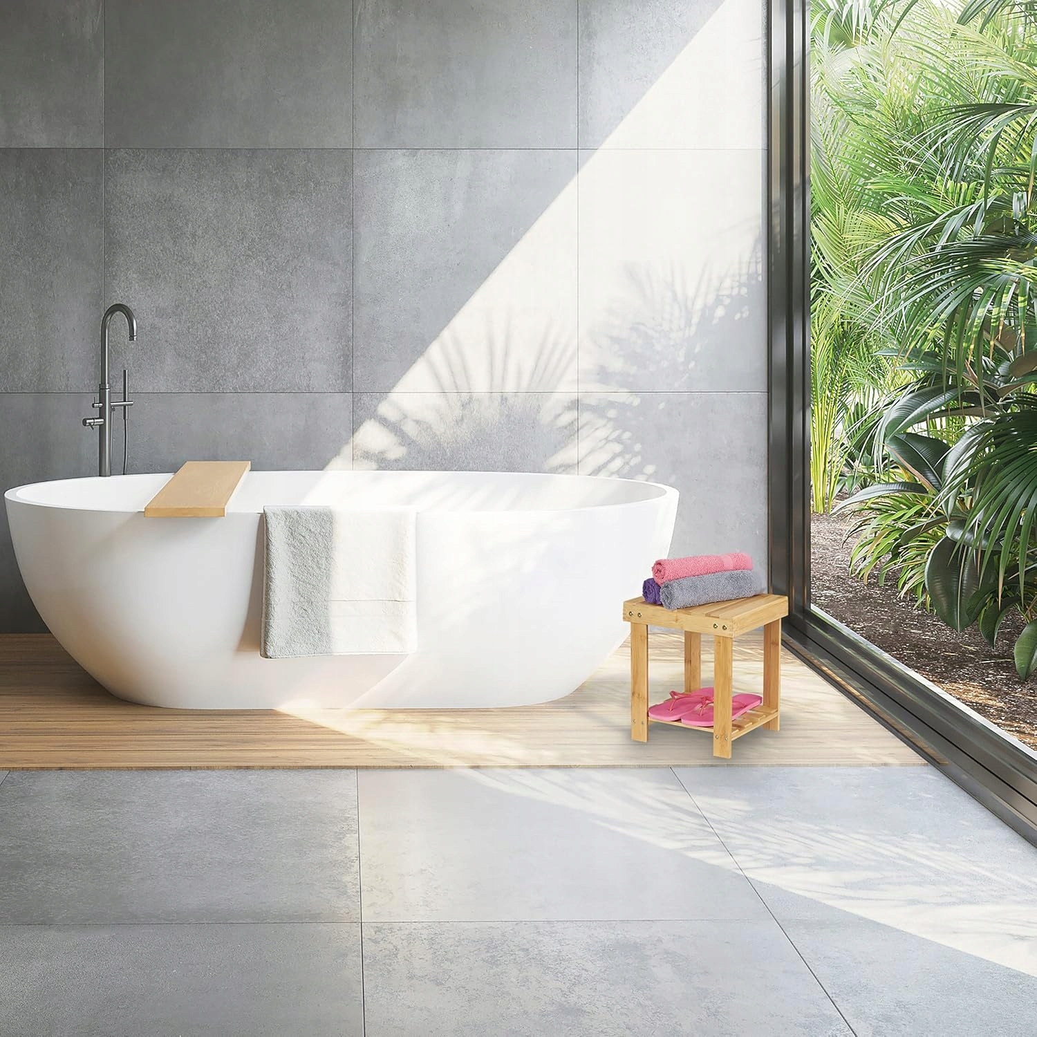 Виготовлений з натурального, вологостійкого бамбука, табурет є міцним, міцним і безпечним для щоденного використання. використання.