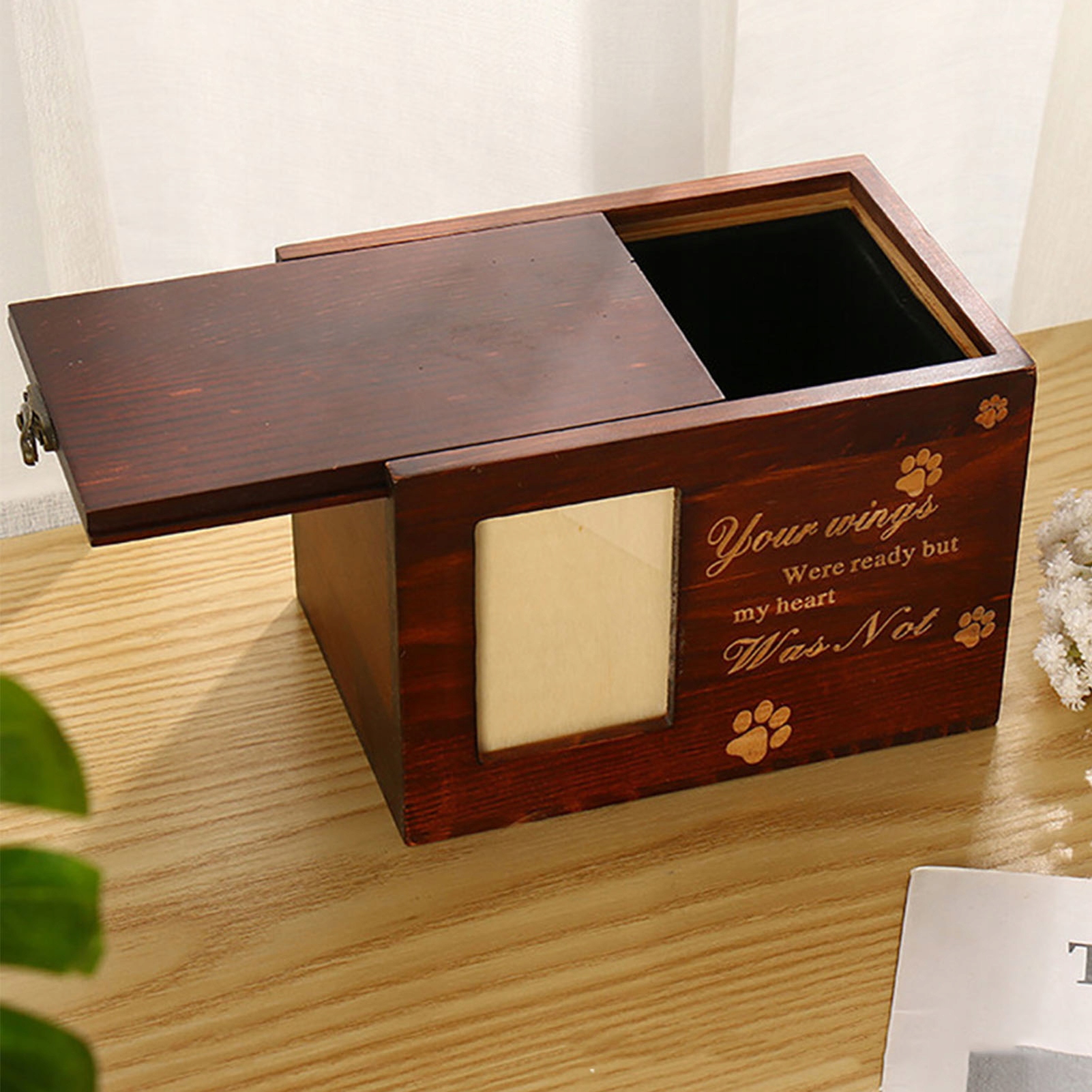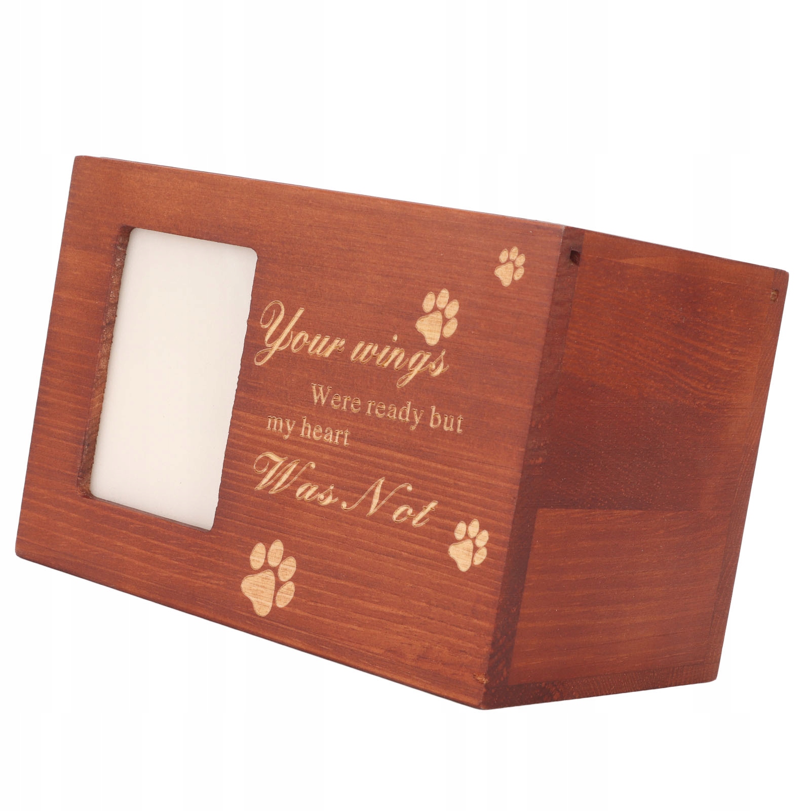 1. Дерев’яне: сувенірна урна для тварин виготовлена з дерева, безпечна для навколишнього середовища, красиво виготовлена, має природну текстуру та колір, є твердим і стійким до зносу і може використовуватися протягом тривалого часу. Інструмент пам’яті: Дерев’яна труна для попелу від домашніх тварин може бути використана для вшанування загублених домашніх тварин, висловлення глибоких почуттів та дружби для домашніх тварин і дозволяє їм жити в наших серцях назавжди. Фото -рамка: дерев’яна урна для тварин оснащена вікном для відображення фотографій розміром близько 2х3 дюймів (висота ширини х). Ви можете вставити найсолодшу фотографію свого вихованця на передній частині коробки, щоб запам'ятати свого найкращого друга. Унікальний дизайн: урна тварини з гравірованою картиною PAW та прекрасним текстом, який не згасає легко, виражає розпізнавання для вашого вихованця, завжди буде частиною вашої родини. Очевидні предмети: урна для попелу домашніх тварин підходить не лише для собак будь -якого розміру, але і для всіх котів та інших тварин. Це також популярний подарунок для друзів або подарунок для сім'ї, яка втратила домашнього улюбленця.