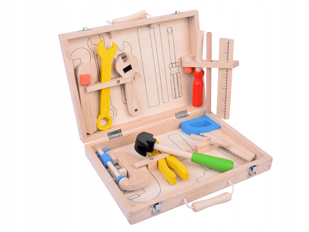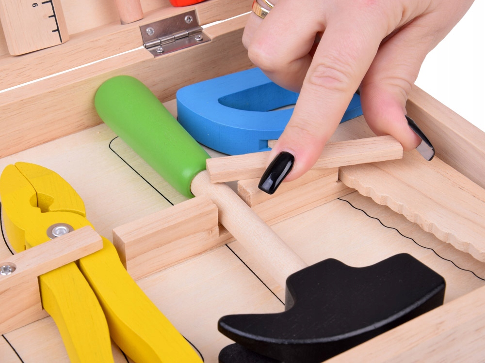дерев’яна валіза з інструментами - це ідеальний набір для дітей, які хочуть допомогти в основному домашньому завданнях або просто любити DIY. Якість деревини , адаптована до маленьких рук, заохочує розвивати ручні навички та уяву.