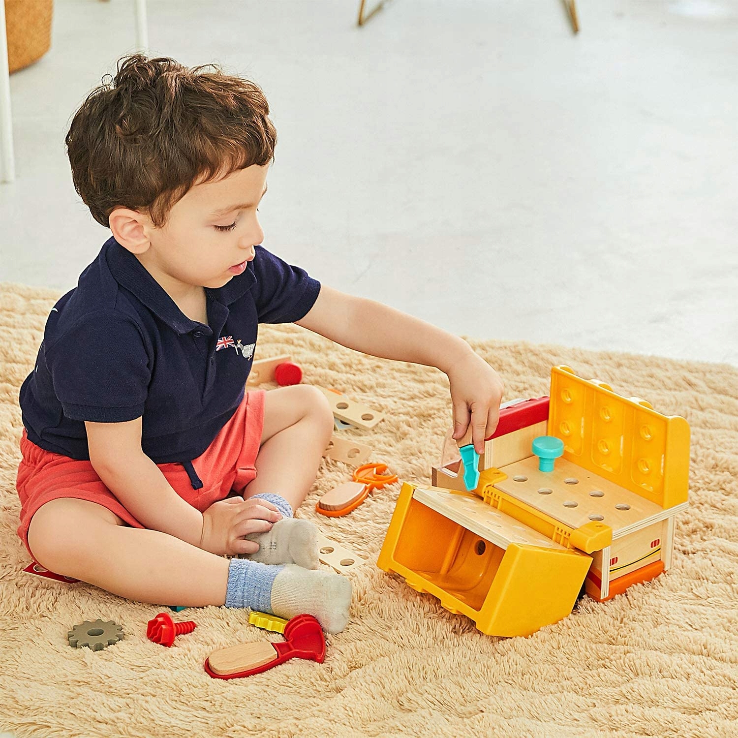 Top Bright Truck — чудовий подарунок для будь-якого ентузіаста DIY. Машина чудово працює як на їзді, так і на стоянці перетворюється на справжню майстерню! Розкривши корпус, ми отримуємо столик з можливістю вкручувати шурупи викруткою, гайковим ключем, або забивати цвяхи молотком або повертати шестерні. З решти блоків ми можемо створювати різні конструкції, наприклад, літак, коня або мотоцикл.