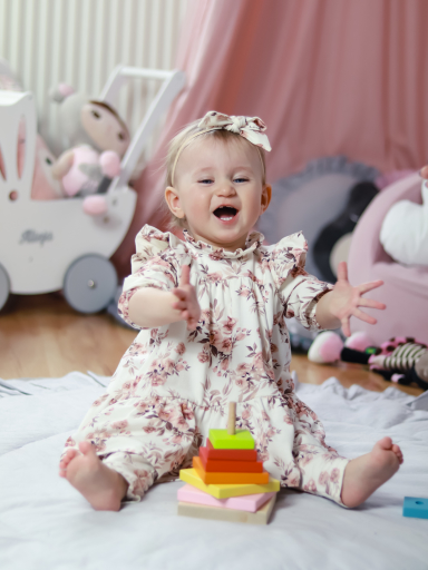 Яскраві кольори та елементи, які зручно тримати маленькими ручками, сприяють іграм.
