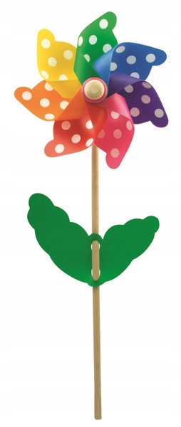 Вертушка шириною 21 см і висотою 58 см із різнокольоровими райдужними крилами (матеріал), закріплена на дерев’яній палиці з листям. Проста іграшка, яка подобається і дітям, і дорослим. Часто використовується для логопедичних і сенсорних вправ. Чудовий компаньйон для прогулянок з коляскою, катання на велосипеді та декоративний гаджет як у приміщенні, так і на вулиці.