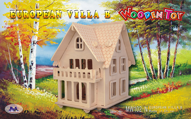 Будиночок виготовляється з дерев'яної фанери з готовими вирізаними елементами для самостійної збірки за ілюстративним кресленням. Щоб зміцнити конструкцію, її можна склеїти столярним клеєм і розфарбувати за своєю уявою.