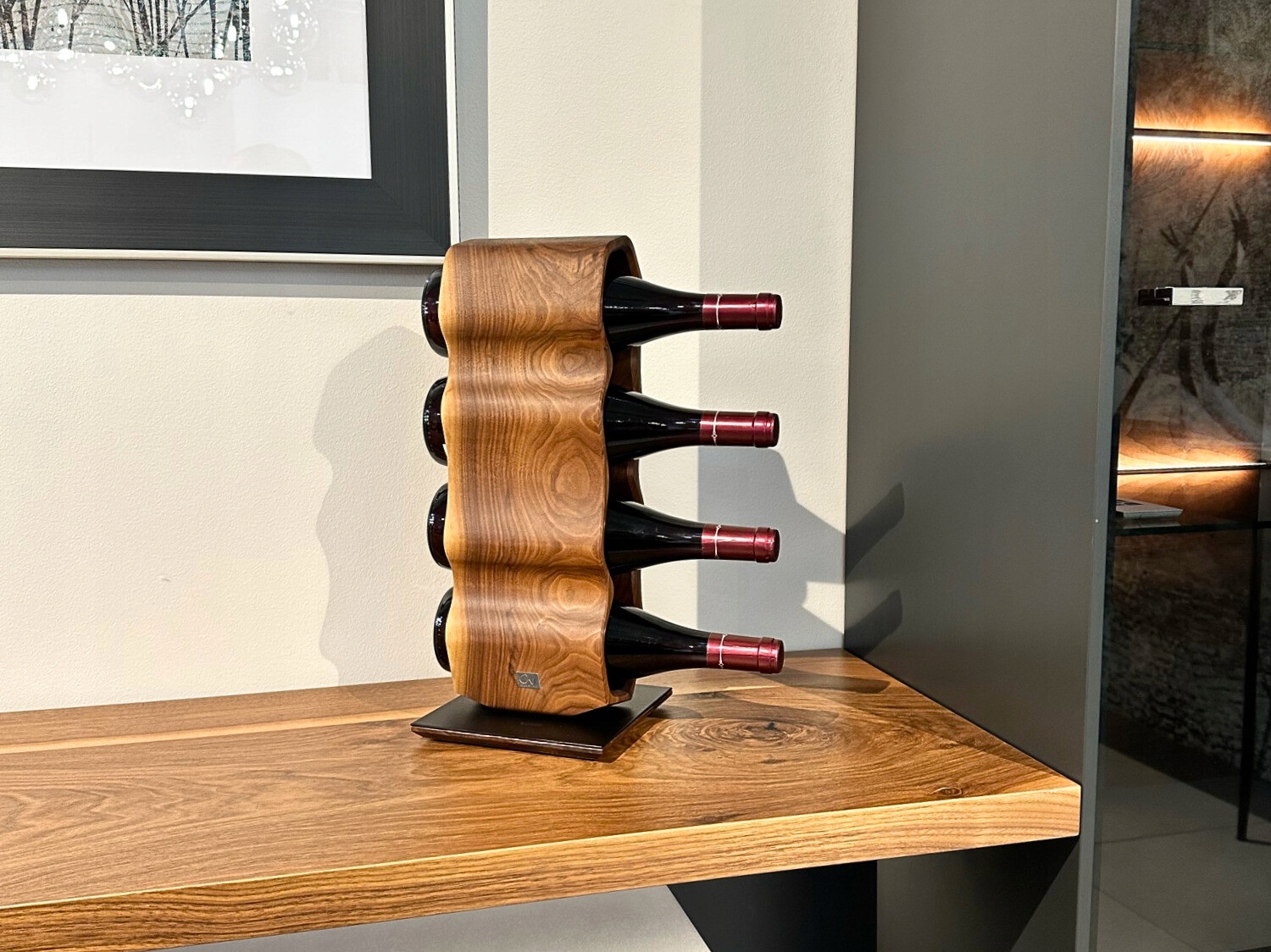 AWRY 2.0 - це не тільки красивий декоративний елемент, але й практичне рішення для любителів вина. Він вміщує чотири пляшки, художньо представляючи їх. Виготовлена з натурального дерева, доступна в трьох варіантах - американський горіх, дуб селект і дуб рустик - підставка стане прикрасою інтер'єру вашої вітальні або кухні. Можливість розмістити його на стільниці чи полиці дає вам свободу розташування, дозволяючи виставити його так, щоб найкраще відображати ваше бачення простору.