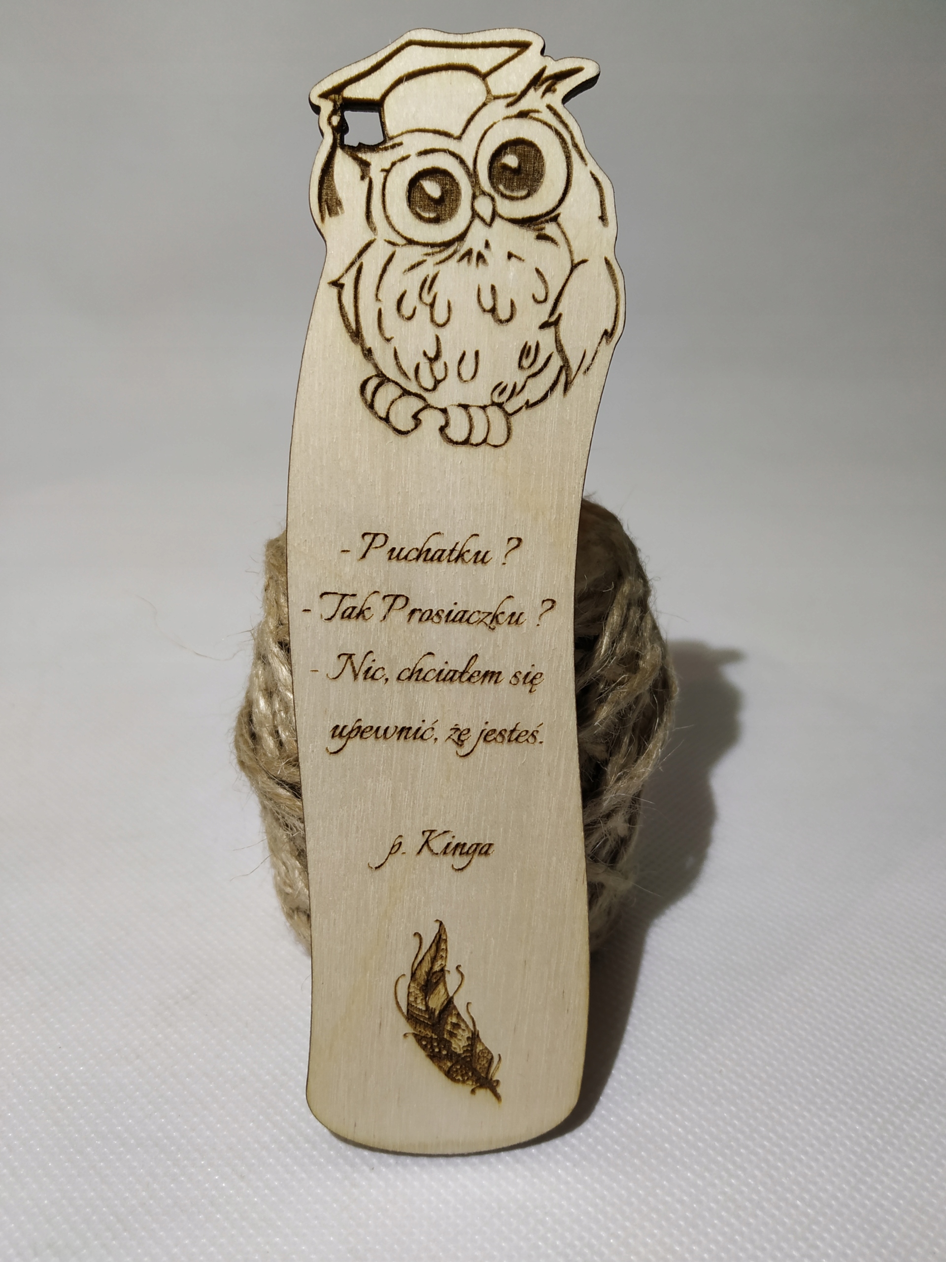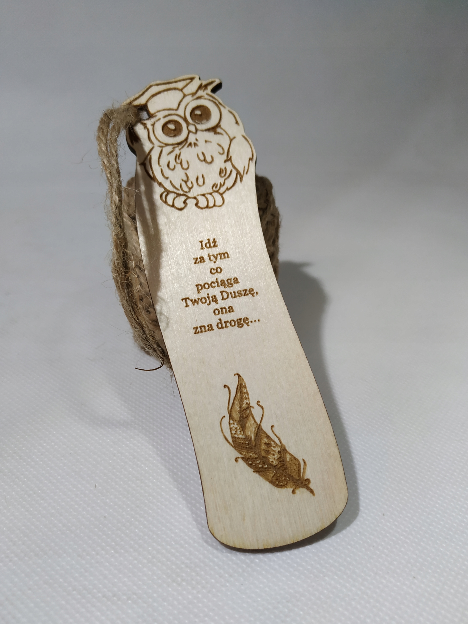 Закладка з фанери - полірована з двох сторін, що значно підвищує її естетичну цінність, легка. Джутова струна додає оригінальності. Розбірливий, чіткий шрифт - ви можете змінити його як завгодно - все обговорюється, просто надішліть свою ідею чи текст. Чудовий як рекламний гаджет, корисний у кожному домі, мотивуючий до читання!