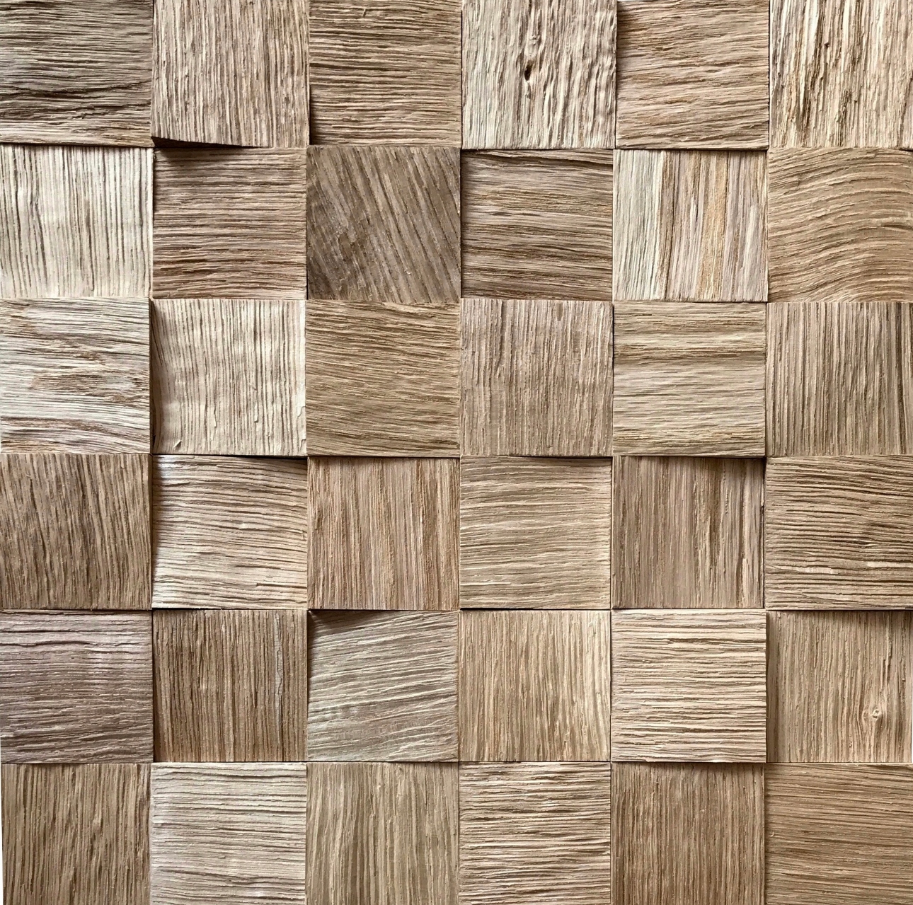 Пано з аплікацією з кубиків натурального дуба з розрізною вручну структурою. Природний 3D ефект. Розмір кожного кубика 5х5 см, товщина 1,5 см. Колір: необроблений
