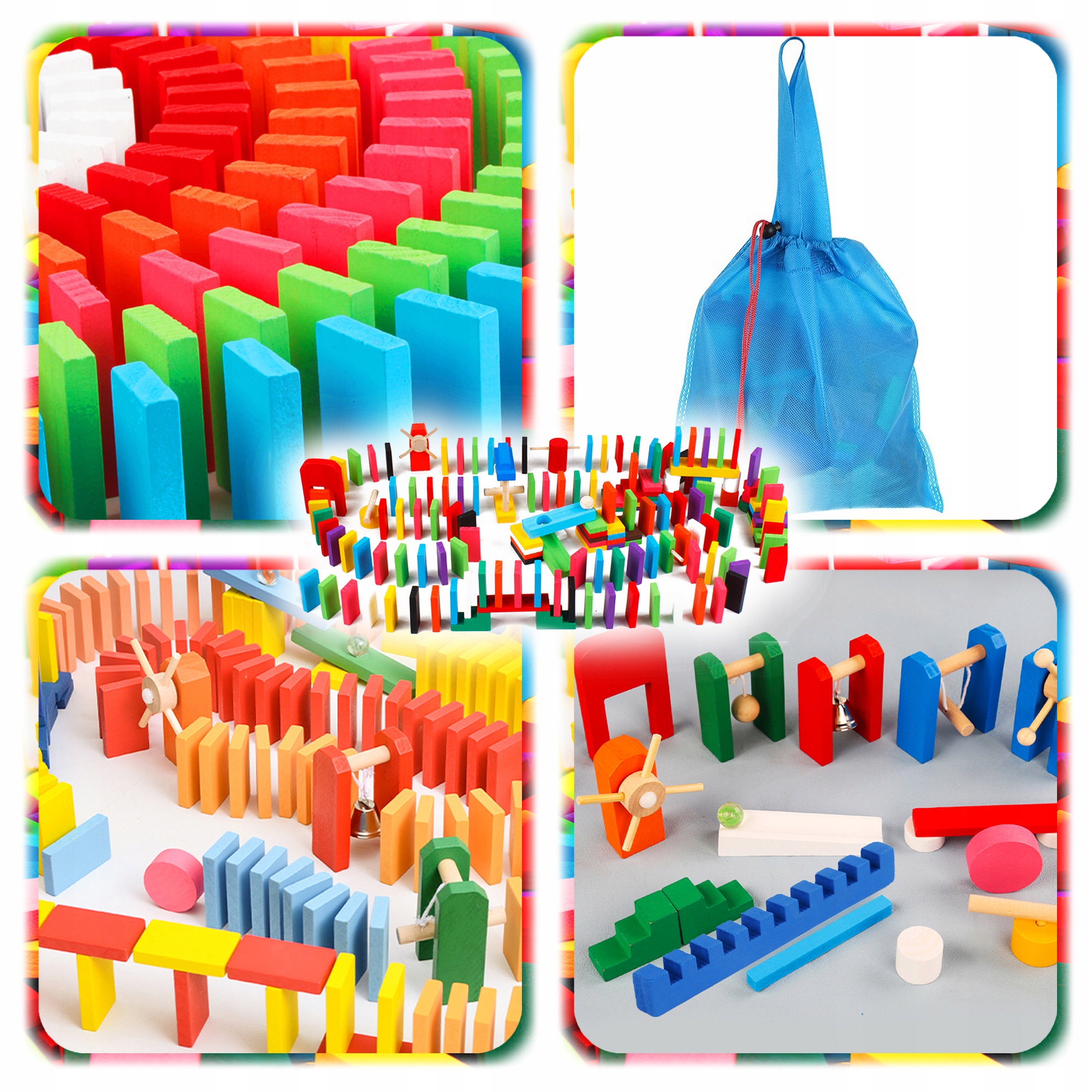 ДЕРЕВ'ЯНЕ ДОМІНО для дітей 1139 елементів Пазл із різнокольоровими блоками XL + перешкоди