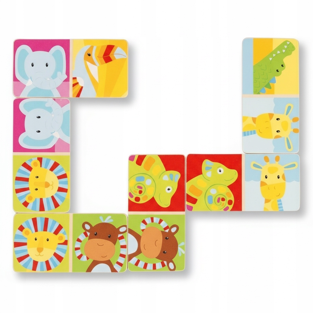 Представляємо Доміно Сафарі - класичну дерев'яну гру, яка поєднує розваги та навчання розпізнаванню тварин! Зіставте картинки - жирафа з жирафом, крокодила з крокодилом - і постарайтеся позбутися своїх блоків швидше, ніж суперники. Це чудова розвага для всієї родини, яка розвиває проникливість, концентрацію та логічне мислення.