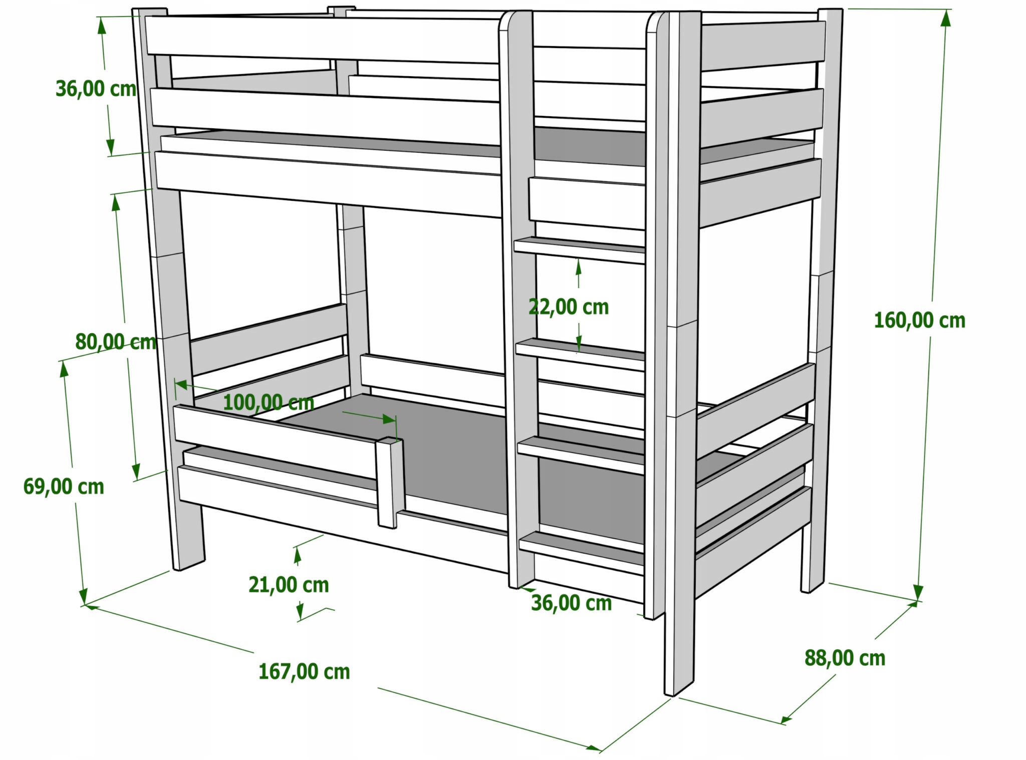 GAGATEK - двоярусне ліжко, повністю виготовлене з високоякісної деревини сосни. Він ідеально підходить для кімнати брата чи сестри, коли вам потрібно оптимально використовувати простір, який ділять ваші діти. Захисні дерев'яні перила захищають від падінь, а діти можуть безпечно та зручно підніматися по драбині з плоскими щаблями. Також можна використовувати GAGATKA як два окремих ліжка. Ліжко можна складати та розкладати багато разів без шкоди для його міцності та естетики.
