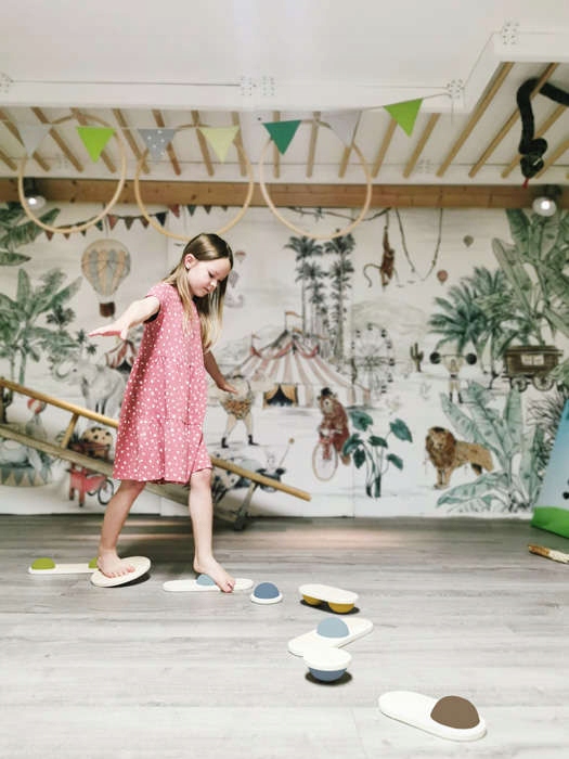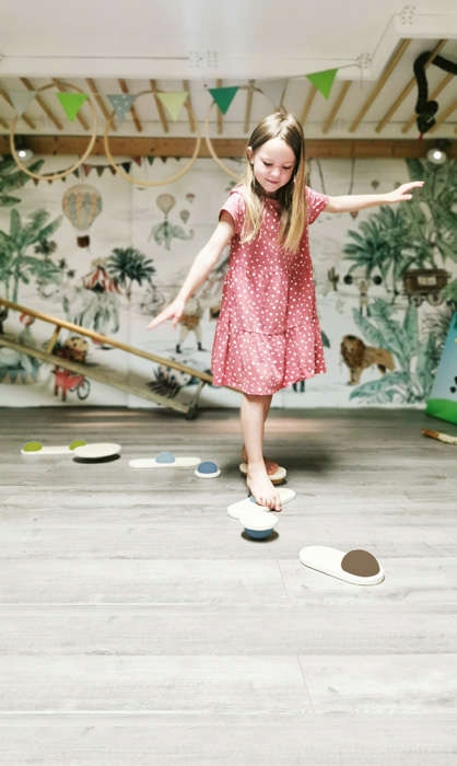 Ці балансуючі камені можна використовувати з обох боків і не тільки стимулюють відчуття рівноваги та бажання рухатися, але й вправляють рівновагу та координацію, приносячи багато задоволення. Камені можна розташувати різними способами та створити креативну доріжку балансування з індивідуальним налаштуванням рівня складності.