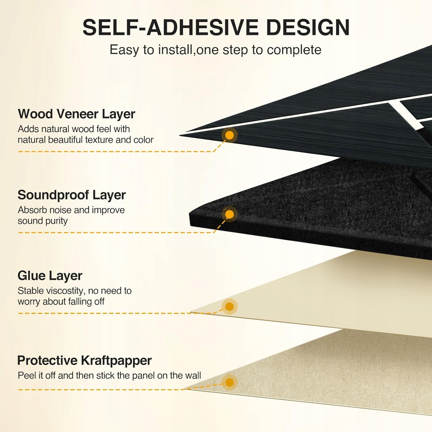 Дерев’яні акустичні панелі 10x 30x30x1.2 Само -адгезивне чорне