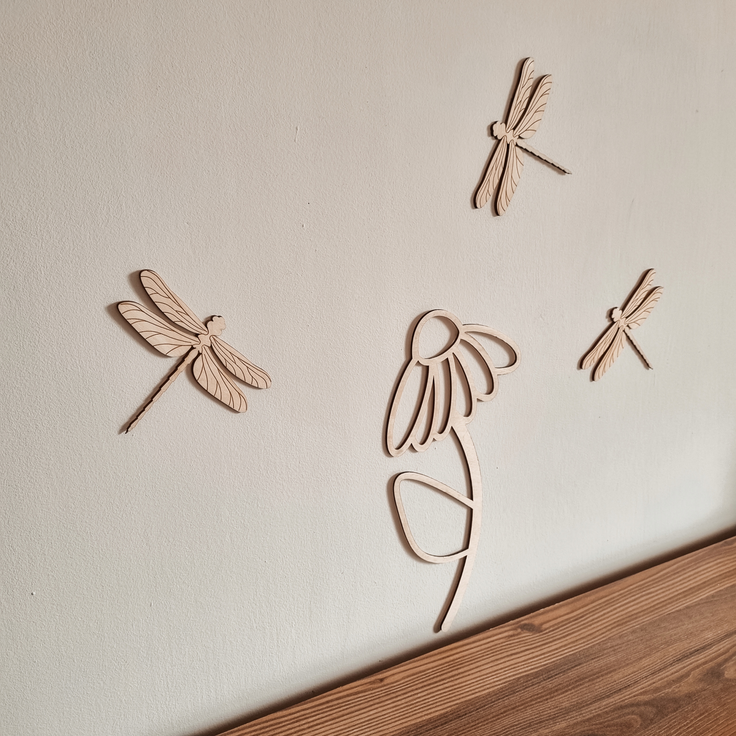 Оживіть свій інтер'єр унікальними прикрасами! Наш набір дерев'яних бабок - це не тільки красиві прикраси, але й вираження майстерності та високої якості виготовлення. Виготовлені з фанери товщиною 3 мм ці тривимірні бабки надзвичайно ефектно виглядають на стінах дитячої кімнати, вітальні чи спальні.
