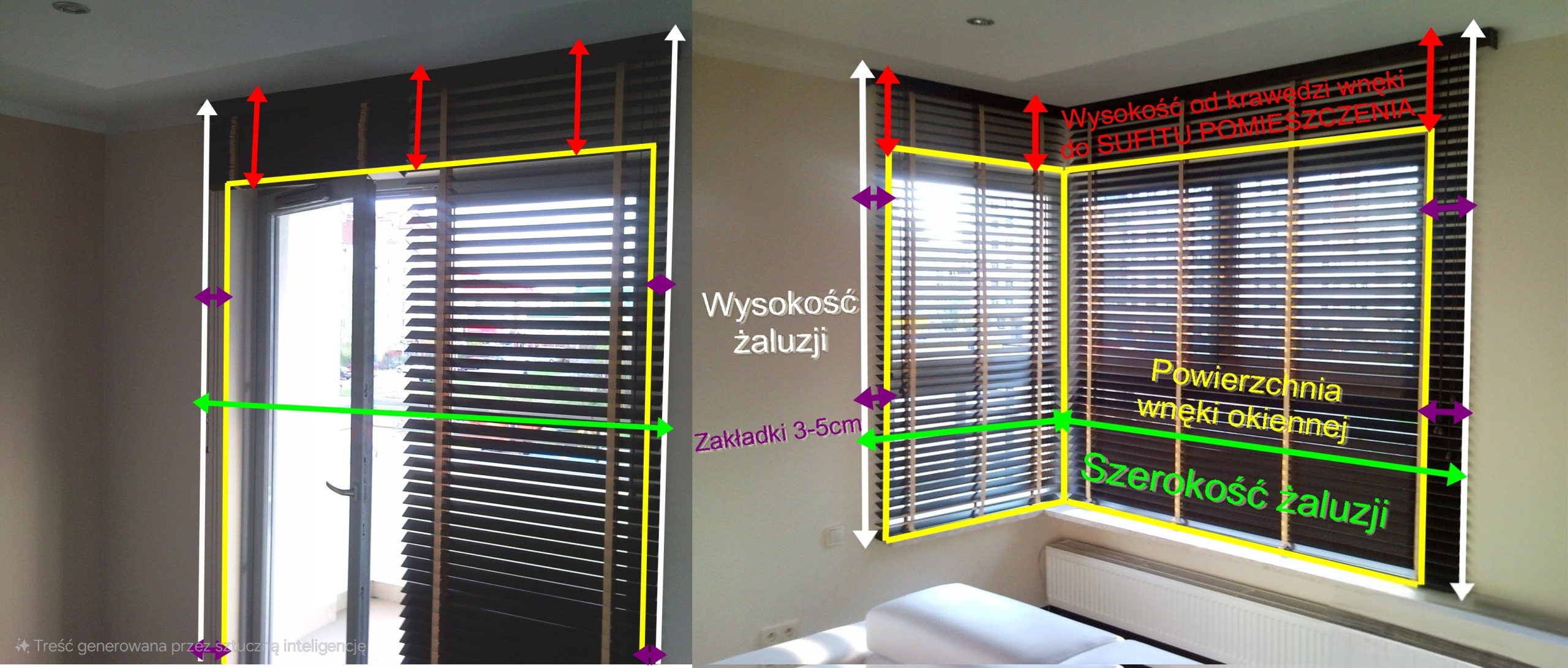 У нашій частині світу використовується інша віконна обробка, ніж у країнах, звідки походять горизонтальні жалюзі 50 мм. У Сполучених Штатах вікна відкриваються вгору, у багатьох європейських країнах вікна схожі на наші, але відкриваються назовні. У Польщі більшість вікон відкриваються всередину, що не дозволяє нам встановлювати жалюзі у віконних нішах і змушує їх встановлювати над нішами. Так як жалюзі 50 мм (особливо дерев'яні) в піднятому стані займають багато місця, тобто приблизно 16% від висоти, в більшості випадків ми монтуємо жалюзі до СТЕЛІ ПРИМІЩЕННЯ. .