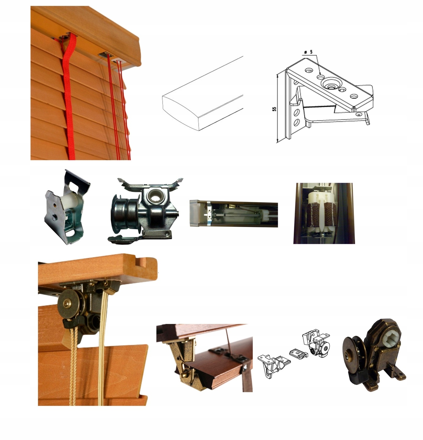 Система базується на сталевому жолобі 57/57 мм, обладнаному моталками (бобінами), гальмом і механізмом повороту ламелей.НИЖЧЕ елементи системи 50 мм СТАНДАРТ