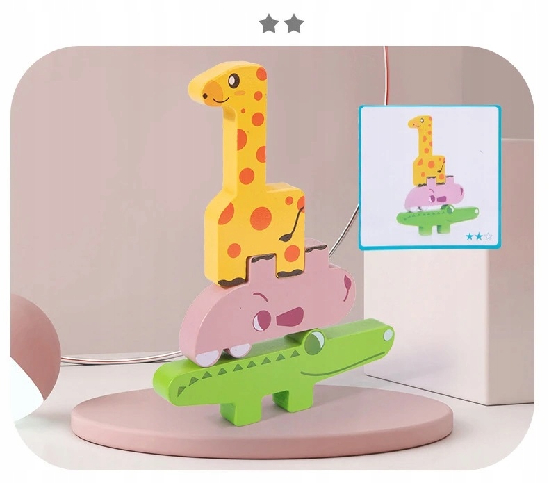Гладко оброблені, дерев'яні блоки безпечні для дітей і приємні на дотик. Завдяки їм дитина може потренувати координацію рухів і поглибити знання про різних тварин. Творчість дитини розвиватиметься через вміння створювати власні конструкції.