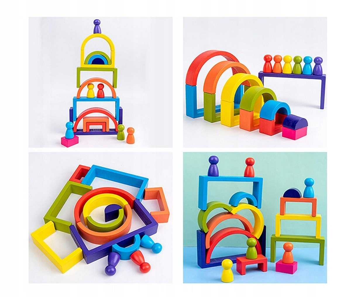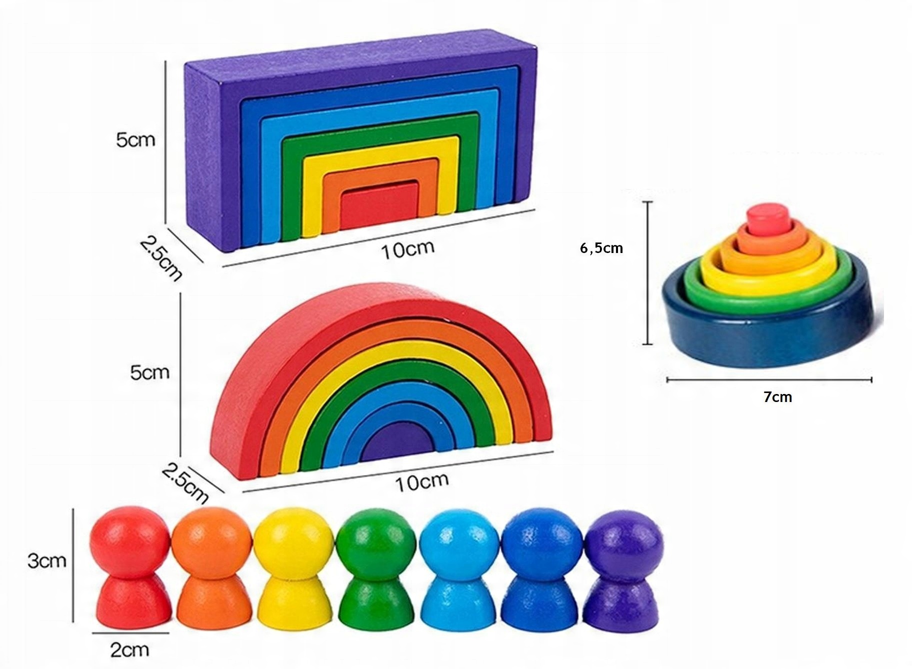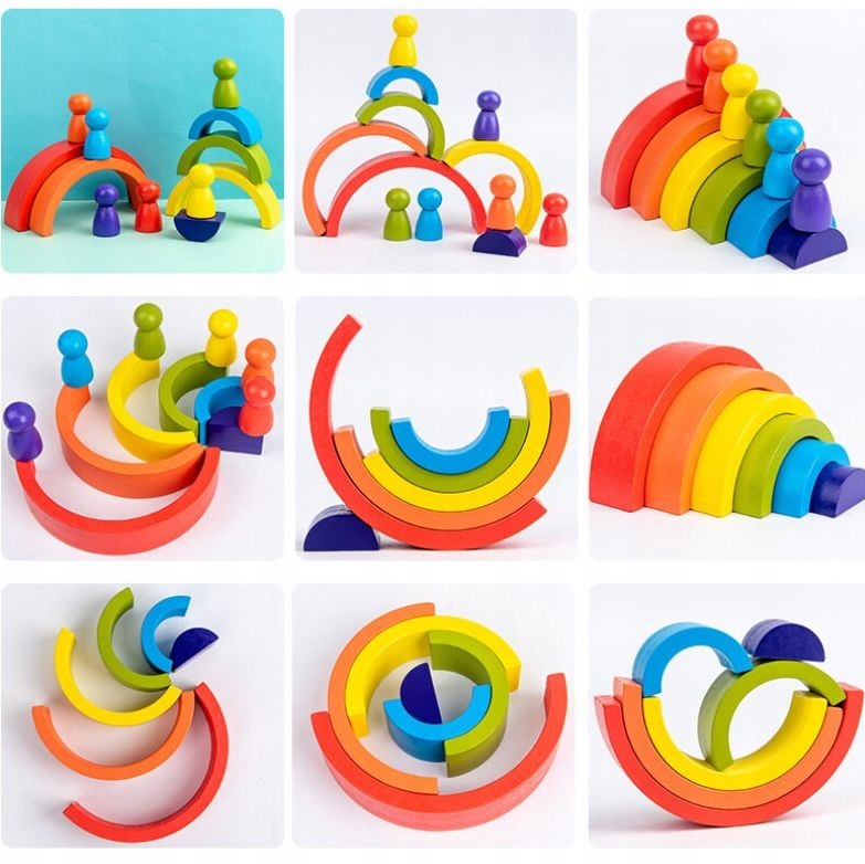 - 7 дерев’яних напівкруглих блоків різних кольорів