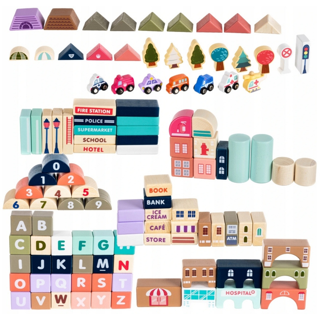 Усі блоки виготовлені з високоякісної деревини, вони ретельно відшліфовані та намальовані нетоксичними фарбами. Це робить їх міцними, безпечними для дітей та екологічно чистим.