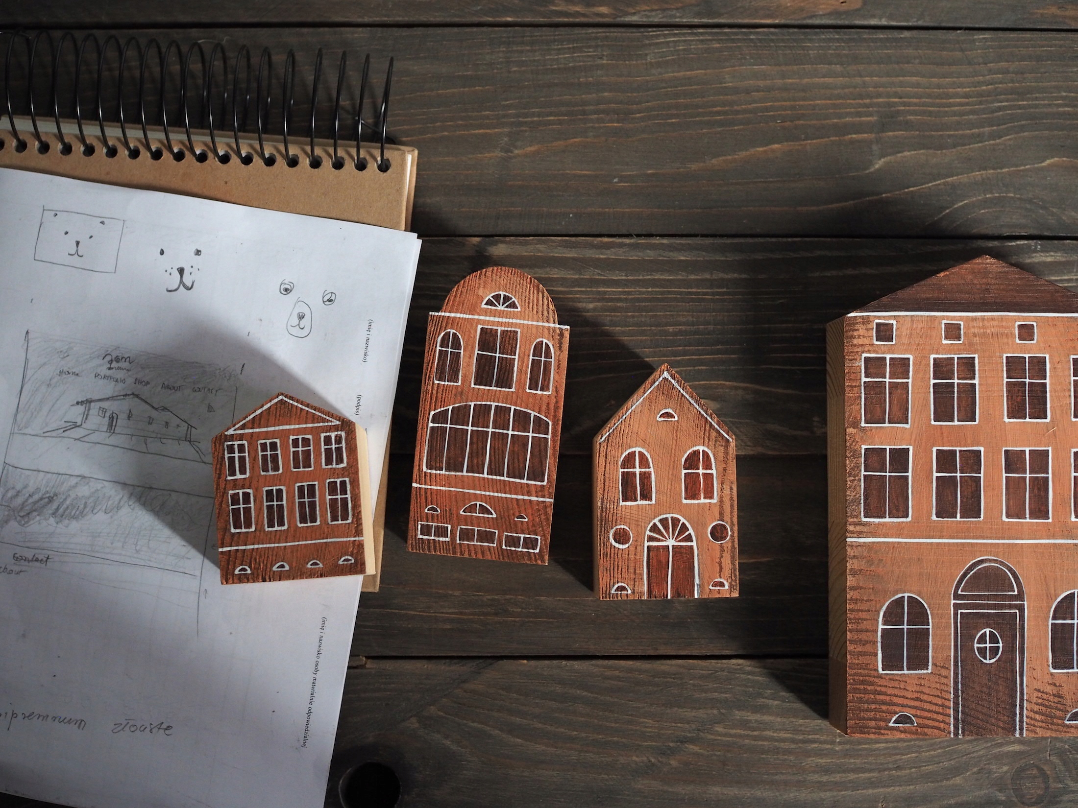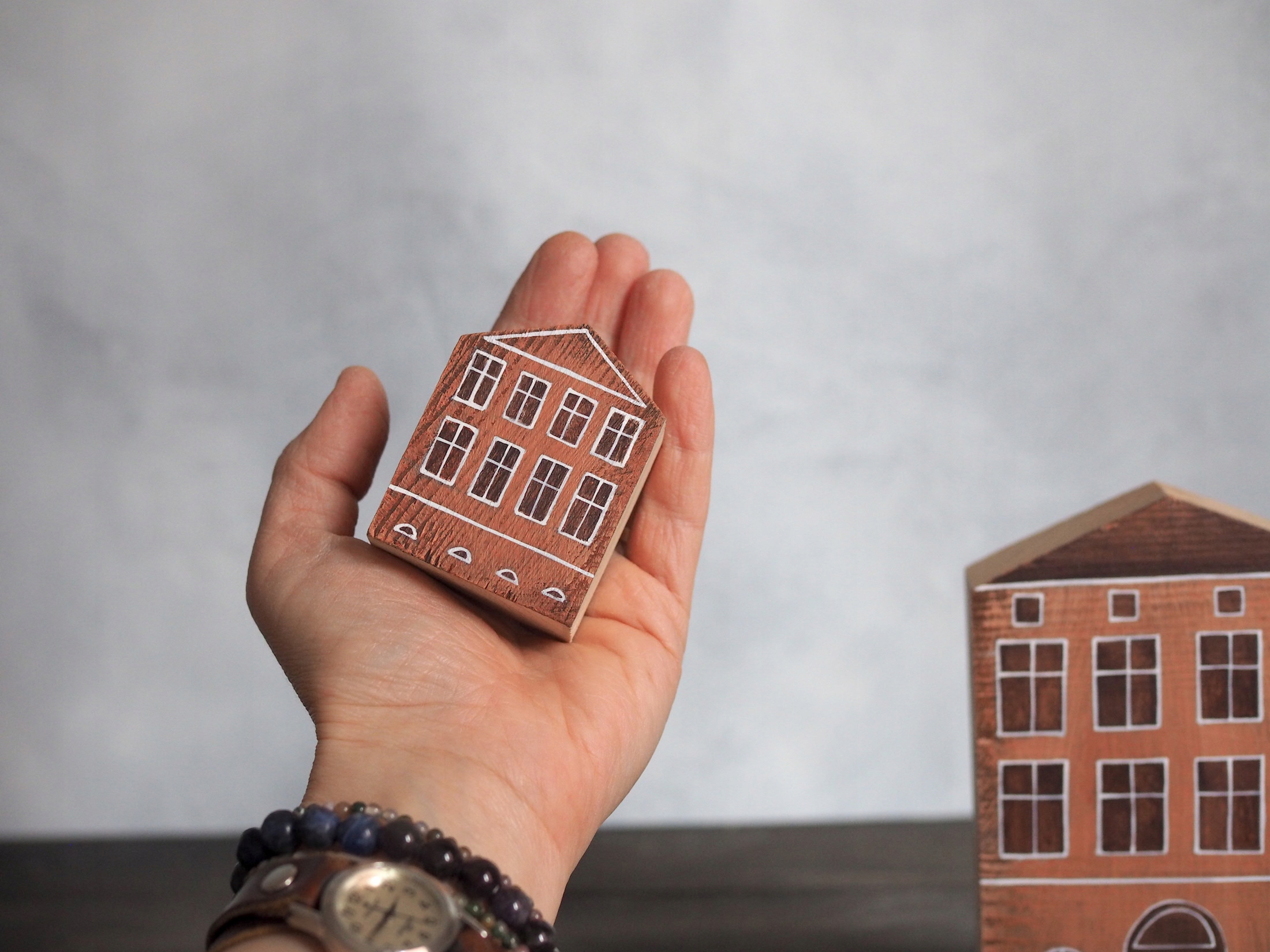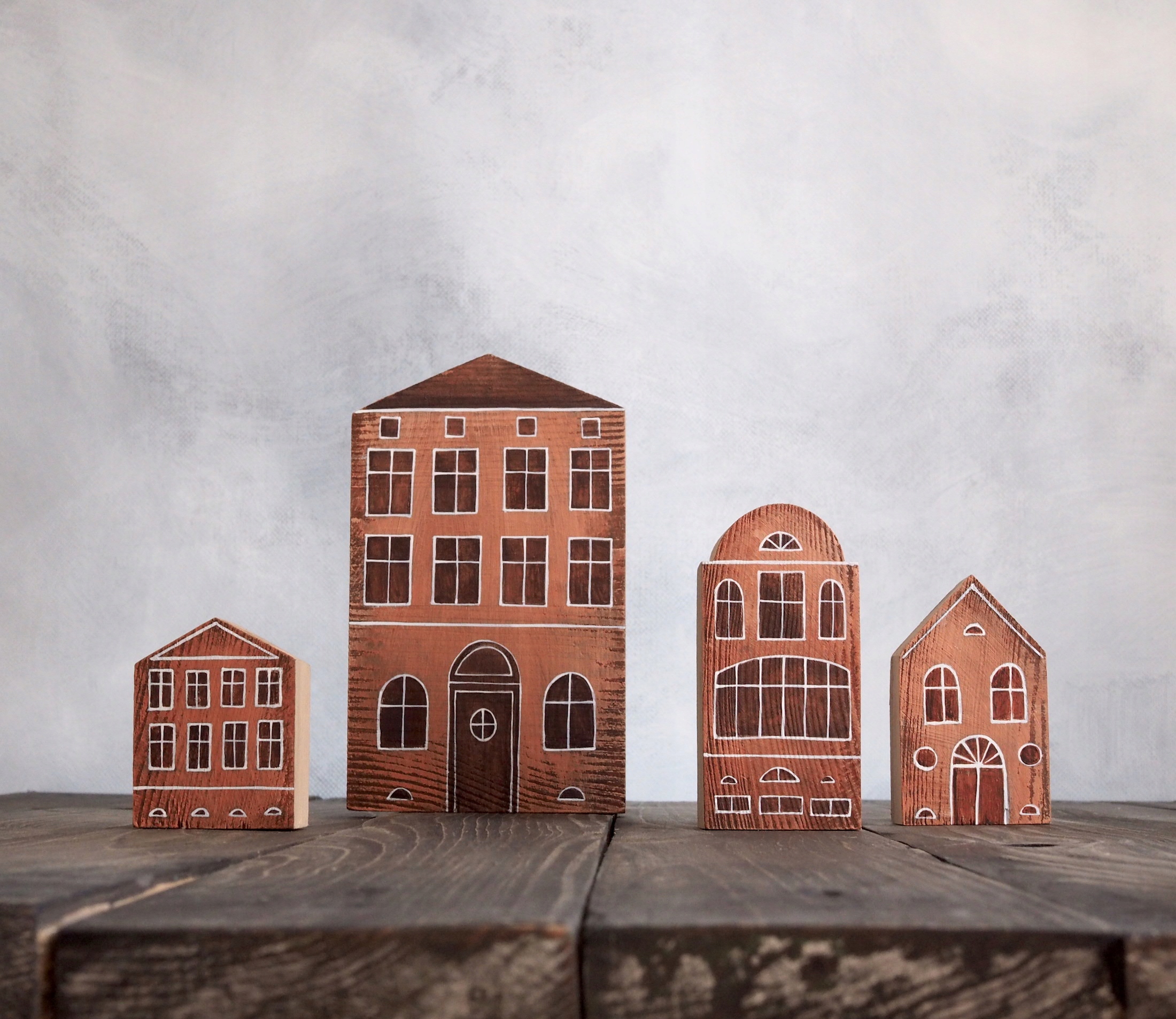 Набір із 4 будиночків, розписаних вручну з одного боку, рівномірно пофарбованих з іншого боку.
