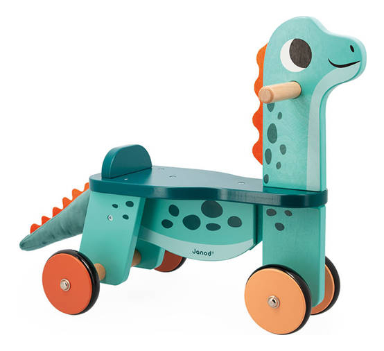 Дерев'яна каталка з колекції "Динозаври" французького бренду JANOD - ідеальна іграшка для дому та подвір'я. Підтримує дитину в моторному розвитку. Ретельно зроблено, з використанням матеріалів найкращої якості та великою увагою до естетики. Він має форму динозавра і має красивий бірюзовий колір з помаранчевими елементами. Його ергономічний округлий дизайн, відповідна висота та профіль сидіння, яке звужене спереду та оснащене низькою спинкою ззаду, полегшують самостійну посадку та висадку дитини та гарантують комфортне водіння. Легка конструкція полегшує керування автомобілем. Також має стійкі і широко розставлені колеса, які не дряпають підлогу в будинку (вони оброблені гумою). Автомобіль має зручні гладкі ручки на кермі кольору натурального дерева та плюшевий знімний (і прикріплений за допомогою липучок) хвіст із виступами. Керування таким транспортним засобом заохочує дитину займатися фітнесом і навчає балансу та координації. Це також чудовий спосіб почати вчитися їздити на велосипеді. ride-on був розроблений у Франції. Упакований в естетичну картонну коробку. Ідеальний подарунок.