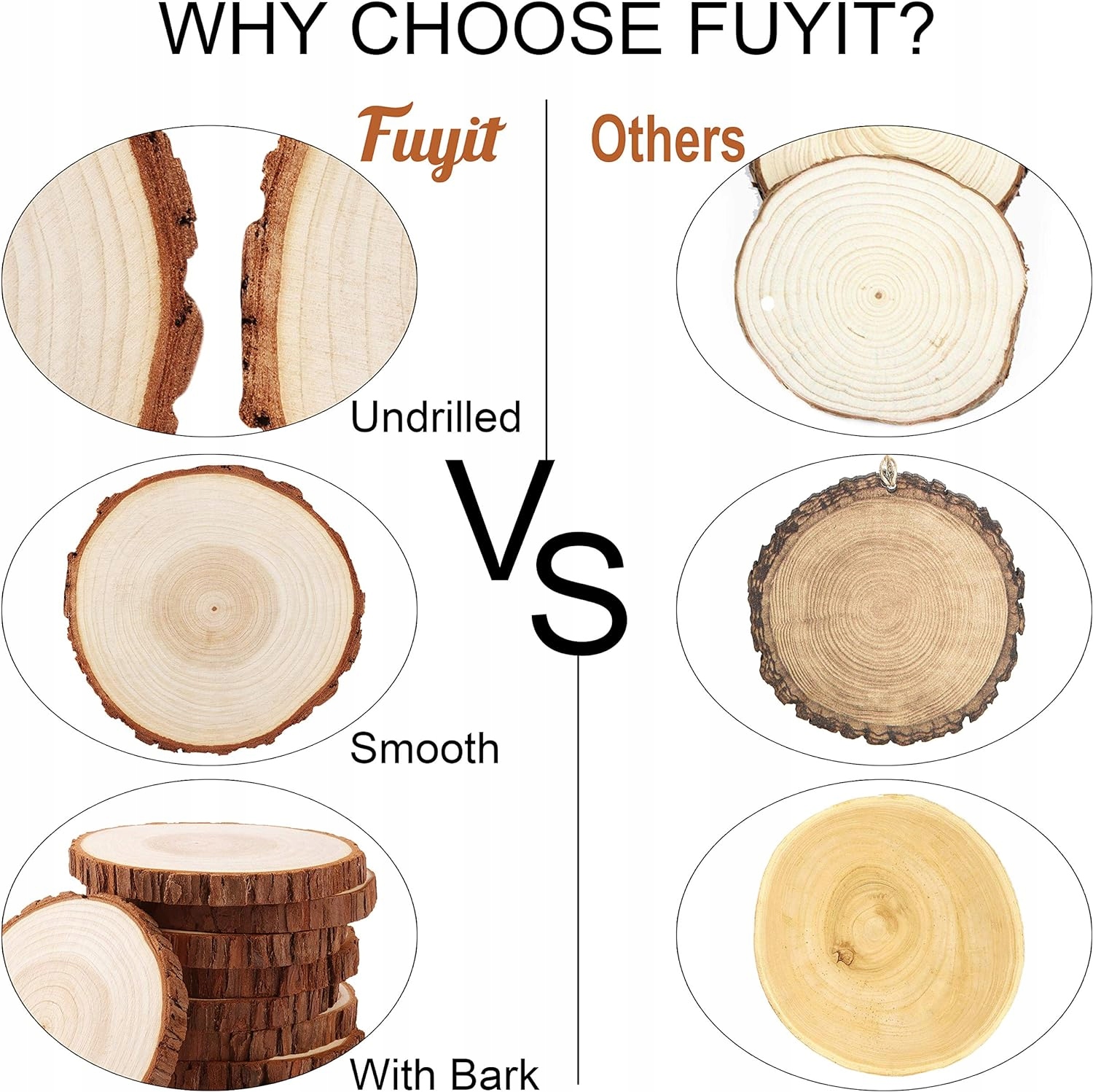Якщо ви шукаєте високоякісні дерев’яні круги для творчих проектів, ці продукти FUYIT виправдають ваші очікування. Подивіться самі, як красиво вони виглядають і скільки можливостей пропонують для створення унікальних витворів мистецтва.
