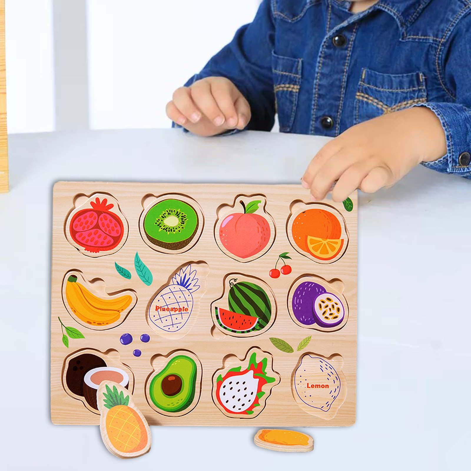 Дерев’яні головоломки для маленьких дітей грають головоломку з тваринами для дівчини 1 2 3 роки фруктової дошки