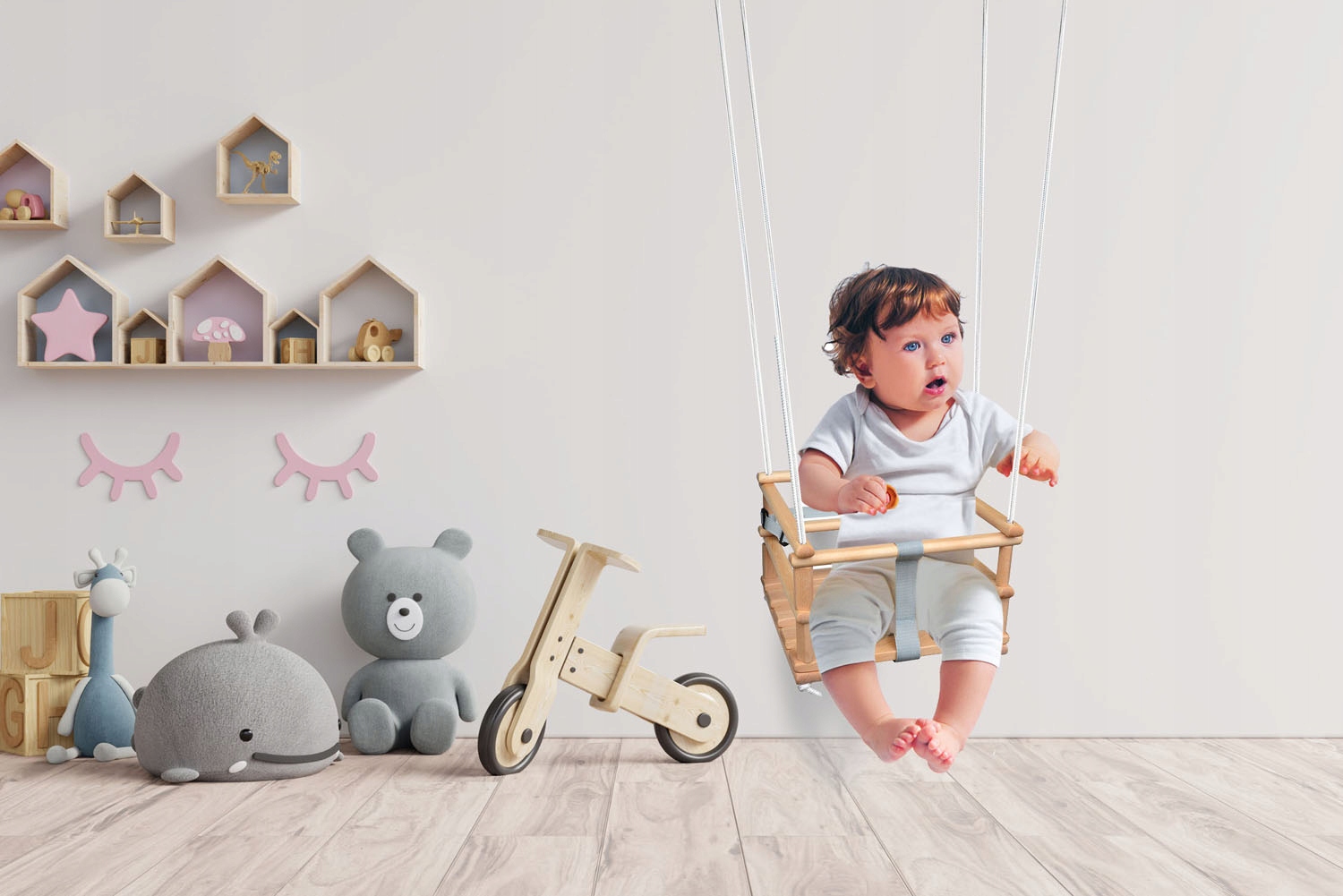 - Оснащений міцними, сертифікованими бавовняними мотузками, що гарантує повну безпеку для вашої дитини!