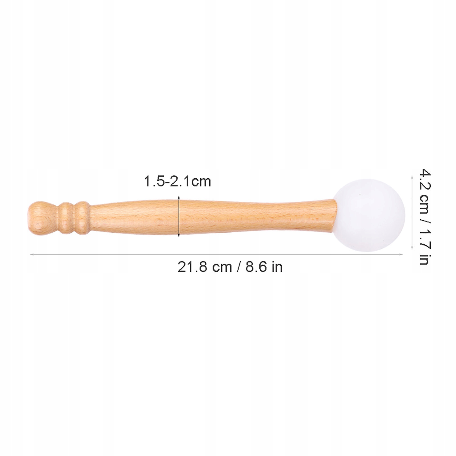 Розмір киянки: прибл. 21,8 см / 8,6 дюйма (загальна довжина), 4,2 см / 1,7 дюйма (діаметр головки), 1,5-2,1 см / 0,6-0,8 дюйма (діаметр ручки)