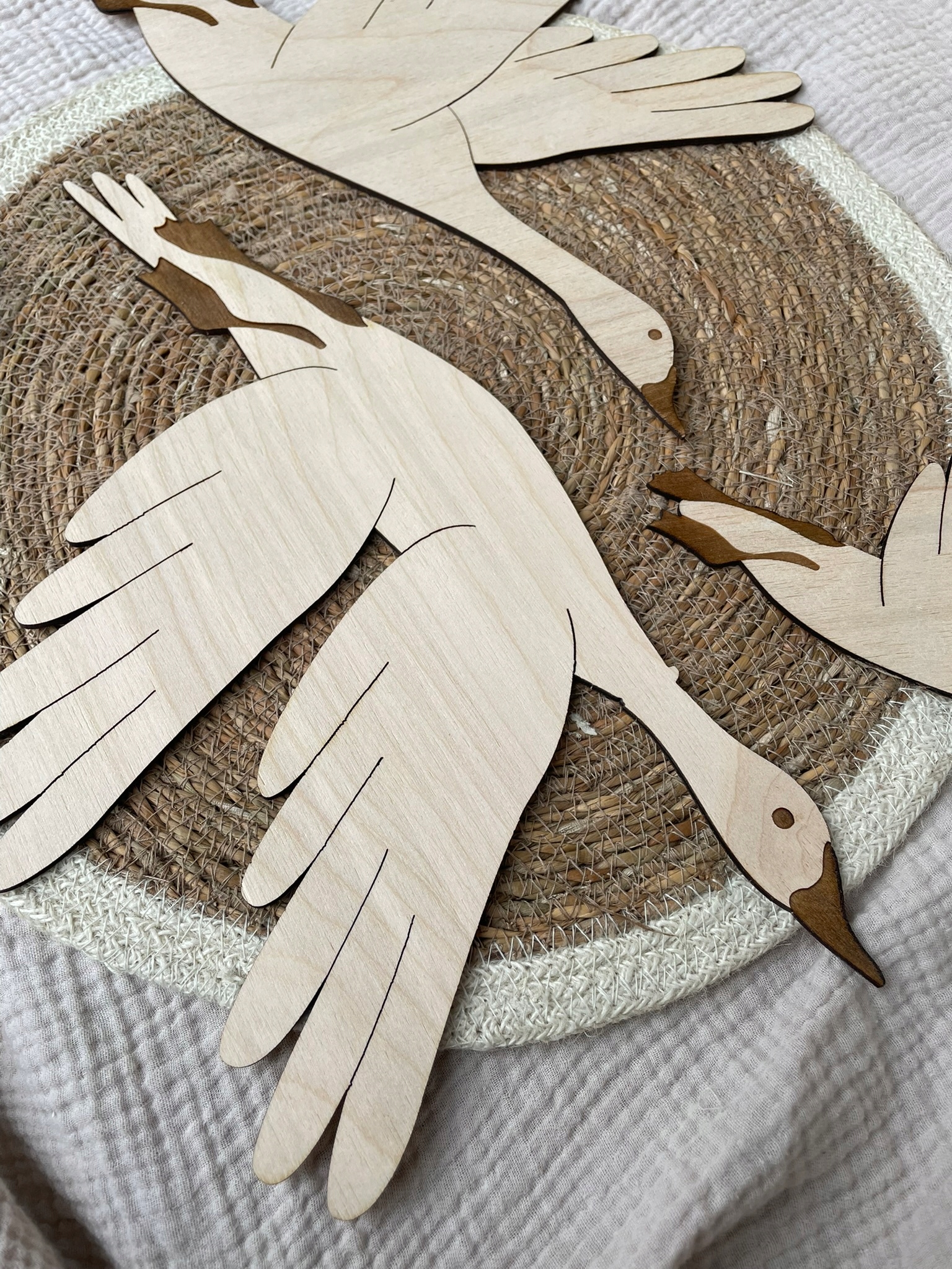 дитячою кімнатою з унікальною прикрасою! Дерев’яні гуси з ефектом гравюри - це елегантне та природне прикраса стінок, що введе тепло та гармонію в інтер’єр. Їх делікатний дизайн означає, що вони підходять як до кімнати дитини, так і старшої дитини. Створіть чарівну атмосферу!