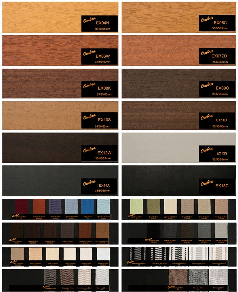 кольорові коди BO01WHITE ... !!! УВАГА !!! Колишній настільки популярний STD08 (від мініатюри на чорних стрічках тепер B06NATS плюс світліша версія цього натурального відтінку бамбука B05NATL)