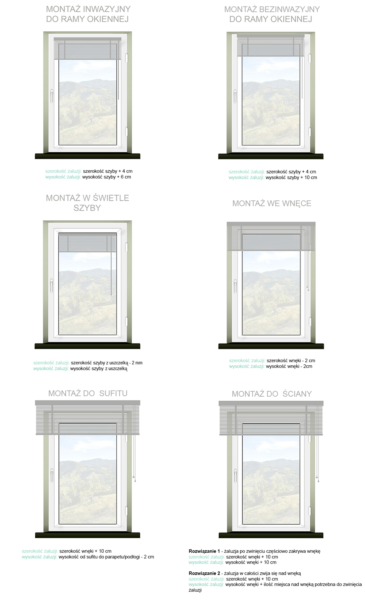 - бічне спрямування - сталеві троси, спрямовані з обох боків, щоб утримувати жалюзі на будь-якій висоті - інвазивне або неінвазивне встановлення