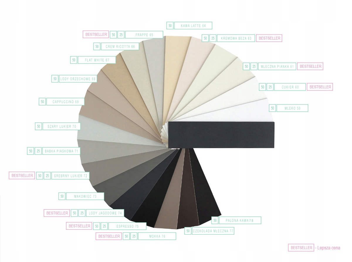 Насичені кольори у відтінках сірого, брудно-білого та антрацитового, ідеальні для скандинавського та сучасного дизайну інтер’єру. Можливість виготовлення жалюзі з ламелями 25 мм зі стрічковою драбиною.