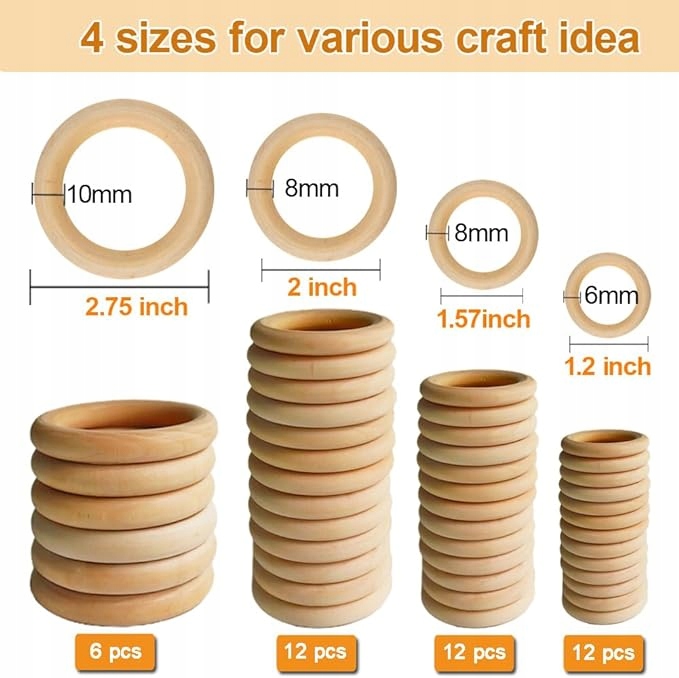 【Дерев'яні каблучки різних розмірів】 Незалежно від того, чи створюєте ви ювелірні вироби, ловці снів, вінки чи щось інше, наші дерев'яні каблучки стануть ідеальним завершальним штрихом. Завдяки широкому діапазону доступних розмірів ви можете вибрати той, який найкраще відповідає вимогам вашого проекту.