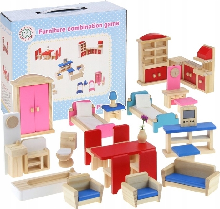 ✔️ Однією з улюблених ігор кожної дівчинки є гра в будиночки з ляльками, а меблі є невід'ємним елементом обладнання кожного будинку. Набір дерев'яних меблів ідеально доповнить будь-який ляльковий будиночок.