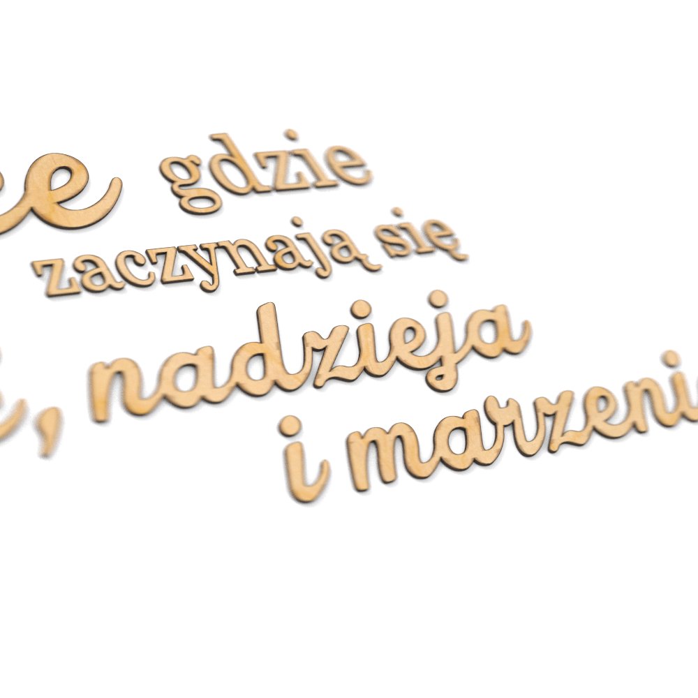 3D написи та декорації виготовляються на замовлення в нашій студії в Ястшембі-Здруй. На наших аукціонах Allegro ми також пропонуємо послуги лазерного різання (Текст на замовлення). Вирізаємо такі матеріали, як акрилове дзеркало, кольорове глянсове оргскло, фанеру товщиною до 12 мм, дерев'яні дошки та ін.