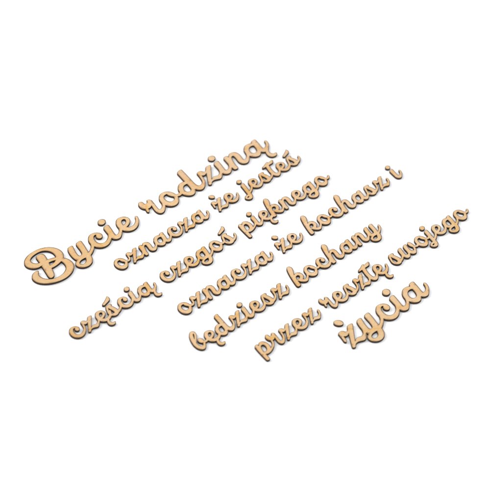 До замовлення (при виборі плити ХДФ) додається двостороння самоклеюча поролонова стрічка. Стрічку можна використовувати на гладкій і чистій поверхні (більшість стін). Ви самі повинні прикріпити стрічку до зворотного боку написів. Для більш складних поверхонь, таких як структурна штукатурка або плитка, написи, вирізані з плит ХДФ, можна прикріпити і іншим способом - самостійно (наприклад, за допомогою клею). При виборі необробленої деревини (фанери) - стрічка в комплект не входить (кріплення самостійно, наприклад на клей). Проект багатоелементний (елементи дизайну вирізані, як видно на фото) - окремі слова/елементи можна розташувати по-різному.