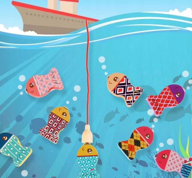 Риби мають наконечники з магнітами, тому їх можна ловити на вудку, яка також входить в набір. Діти люблять цю гру, вона також розвиває ручні навички.