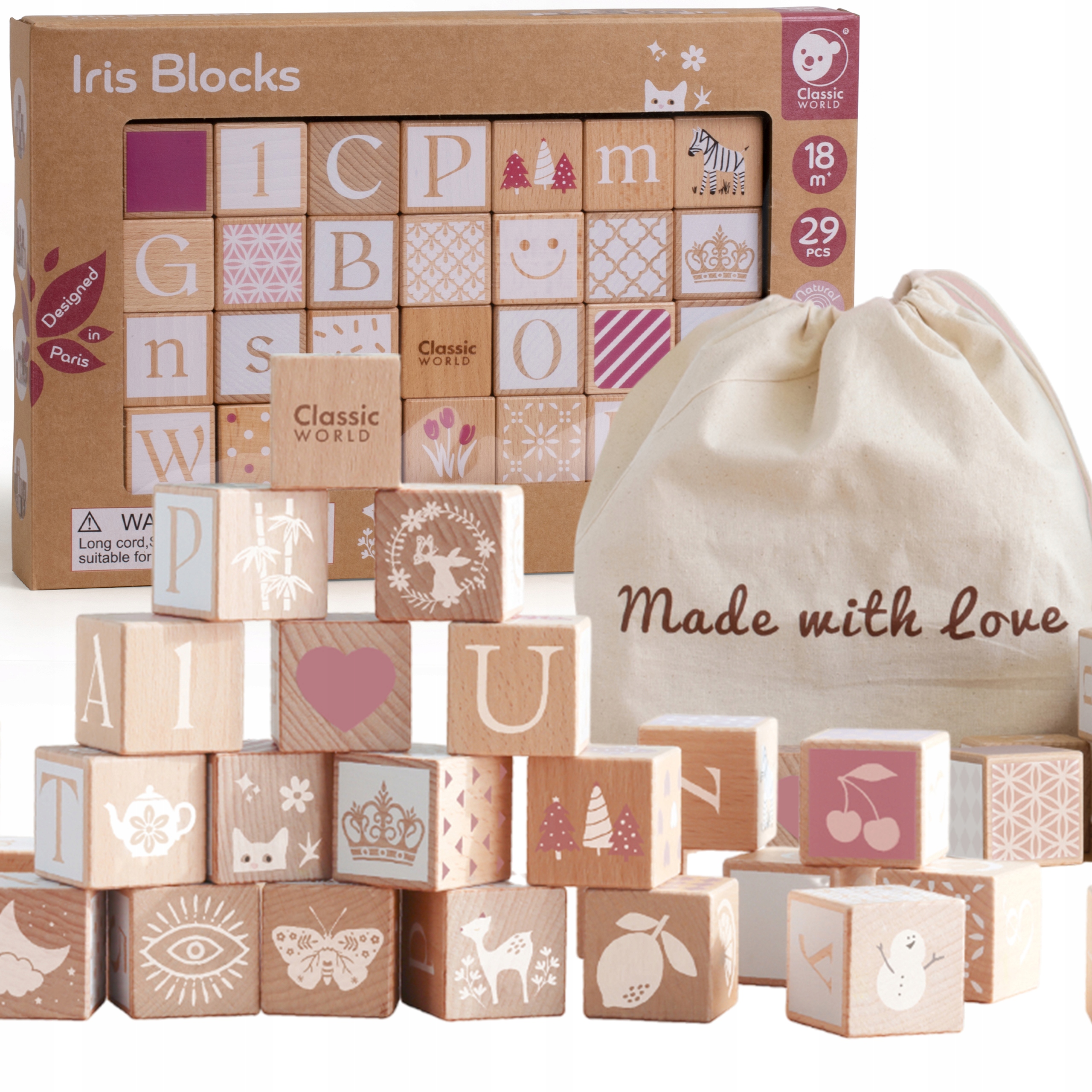 Класичні світові дерев'яні пастельні блоки Листи для навчання головоломки з листів 29 EL. Підтримує будівництво забав , переслідування цілі , творчості , вирішення проблем та основи стебло . Іграшка складається з 29 різних блоків. Ви можете виконати математичні дії, навчити алфавіту та аналізувати зображення. Упаковано в гарненькому картоні коробки Ідеальний відповідний подарунок.