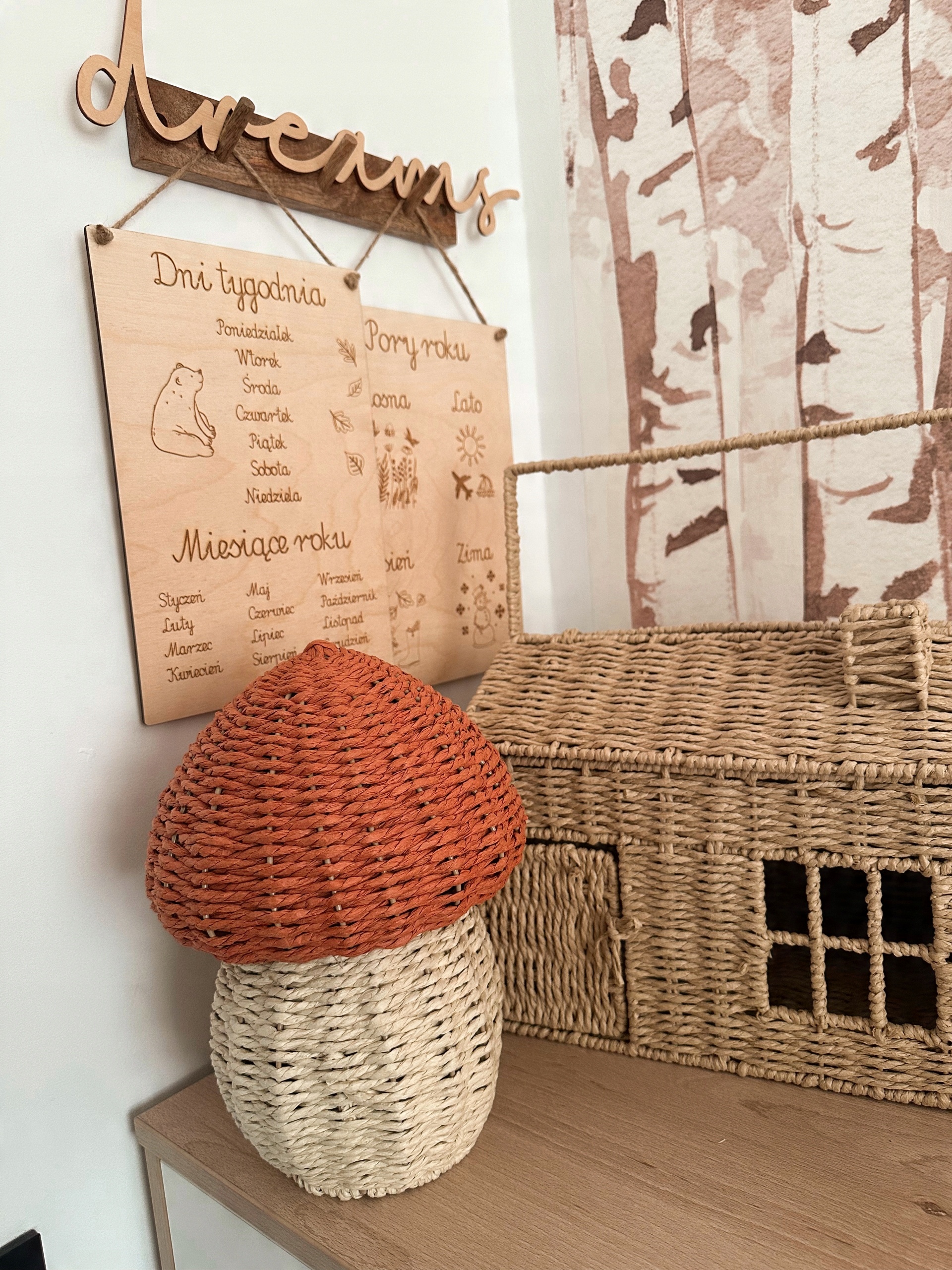 Дот з тижнем і місяцями допоможе вашій дитині в вивченні таких важливих речей. Включає джутову струну для повіслення тарілки. Ознайомлення дитини з днями тижня та іменами місяців є дуже важливим - За словами Монтессорі, оволодіння цим знанням допомагає дитині зрозуміти концепцію часу та ритму повсякденного життя .