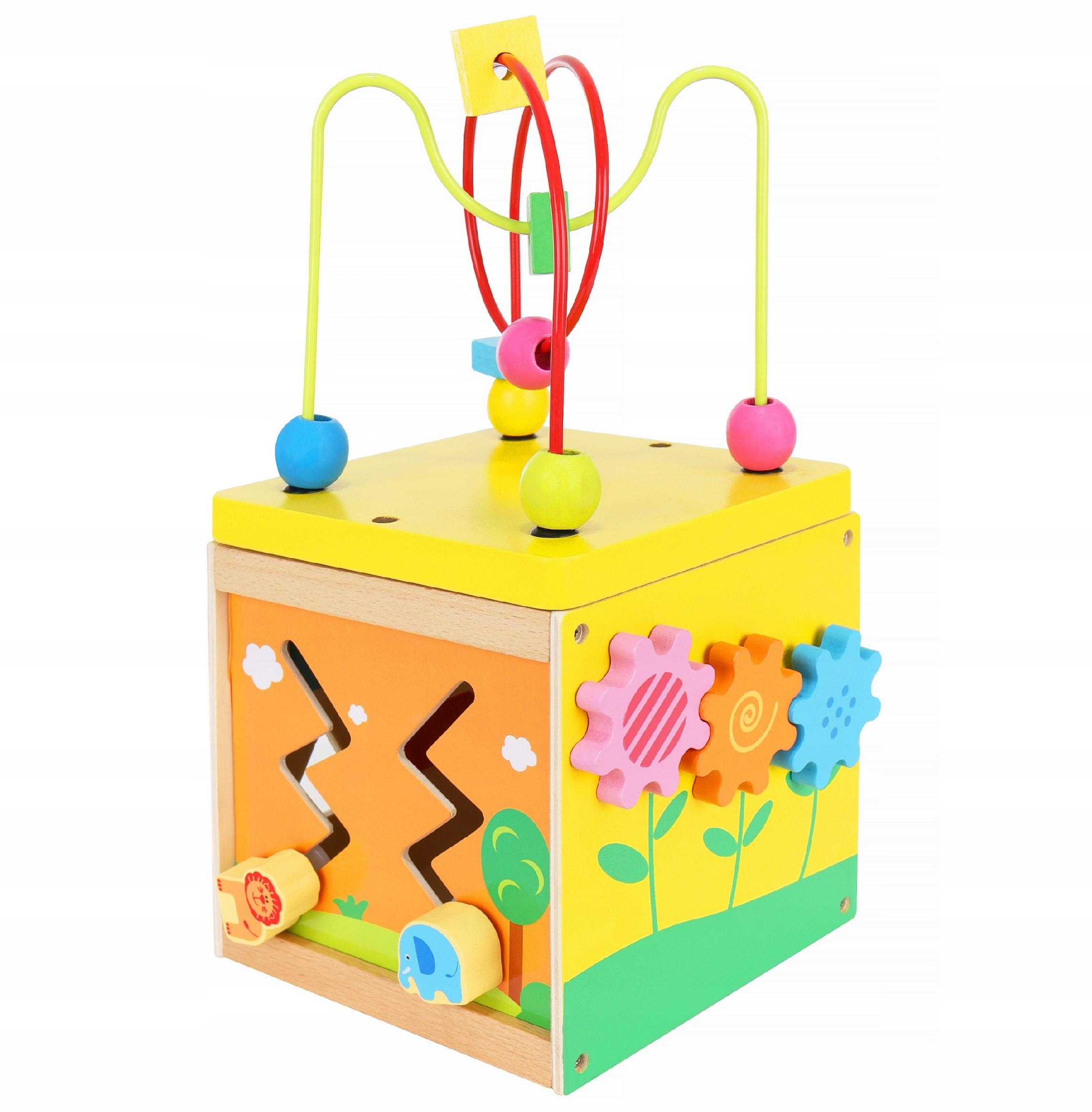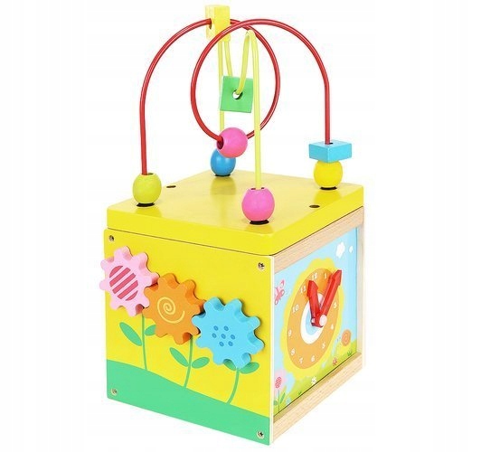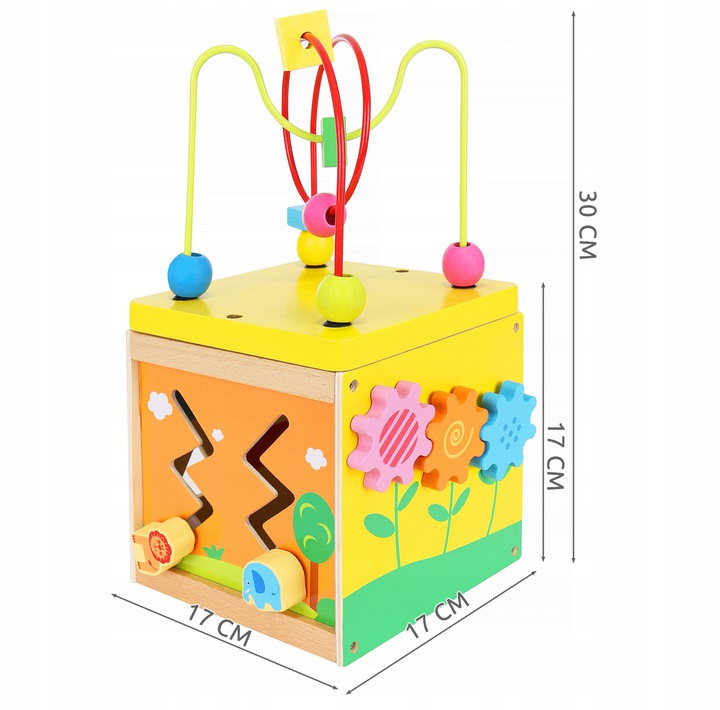 Дерев'яний кубик-сортер 5в1це цілий світ розваг для вашої дитини. Куб містить лабіринт - головоломку та 4 придатні для використання стіни для гри, на кожній з яких є різні завдання для дитини.