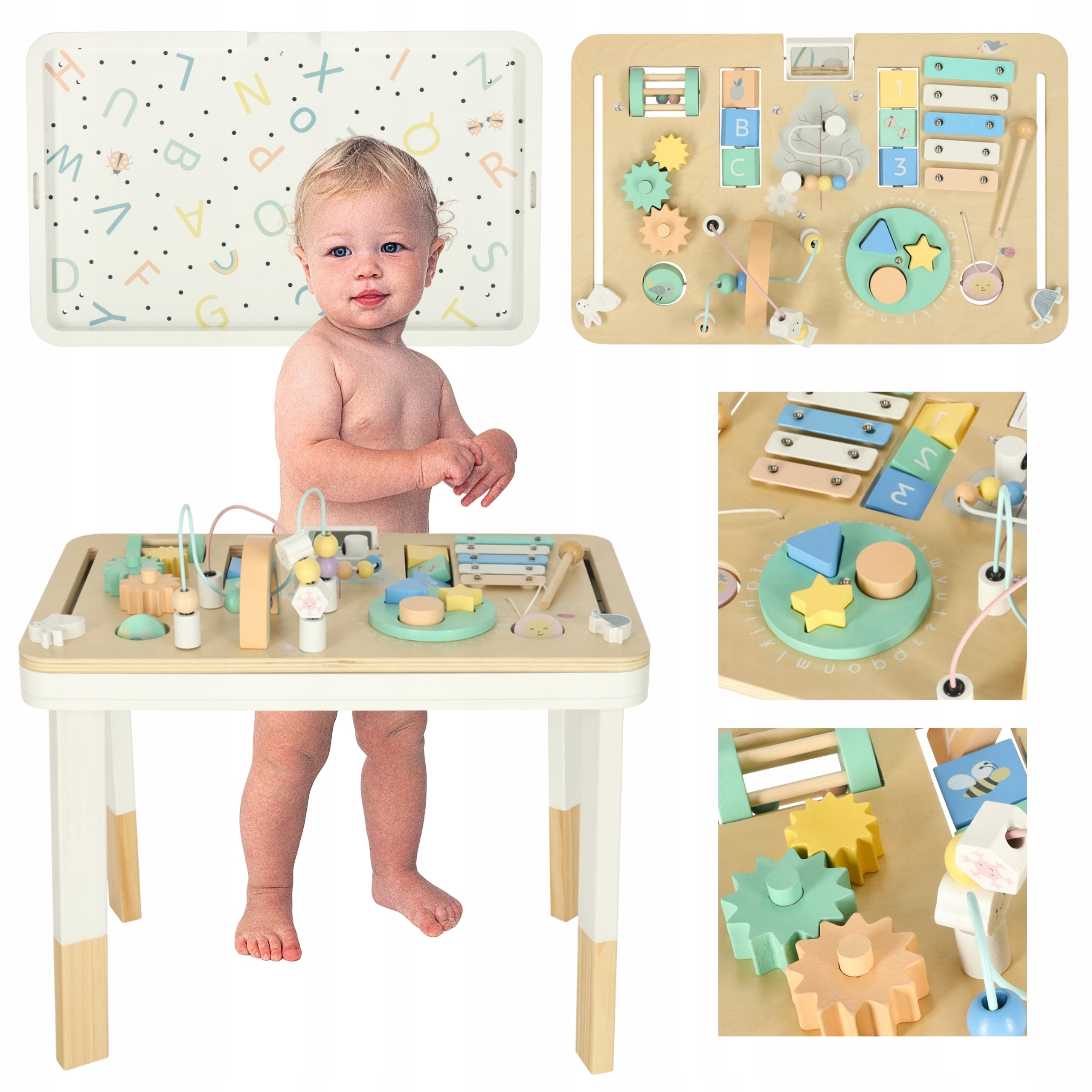Стіл був виготовлений з деревини з закругленими краями і пофарбований нетоксичними фарбами, завдяки якому це безпечно для малюків. Інтенсивні кольори привертають увагу і ідеально відповідають дитячій кімнаті. Дизайн також дозволяє використовувати таблицю для малювання та письма, що робить його практичним та багатофункціональним рішенням. Ідеальний вибір для подарунка, який поєднує в собі навчання та гру в дусі Монтессорі.