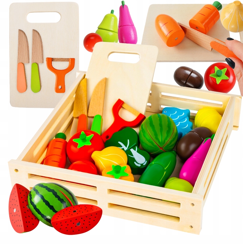 ДЕРЕВ'ЯНІ ОВОЧІ ТА ФРУКТИ ДЛЯ НАРІЗАННЯ BOX XXL НАБІР ДИТЯЧИЙ