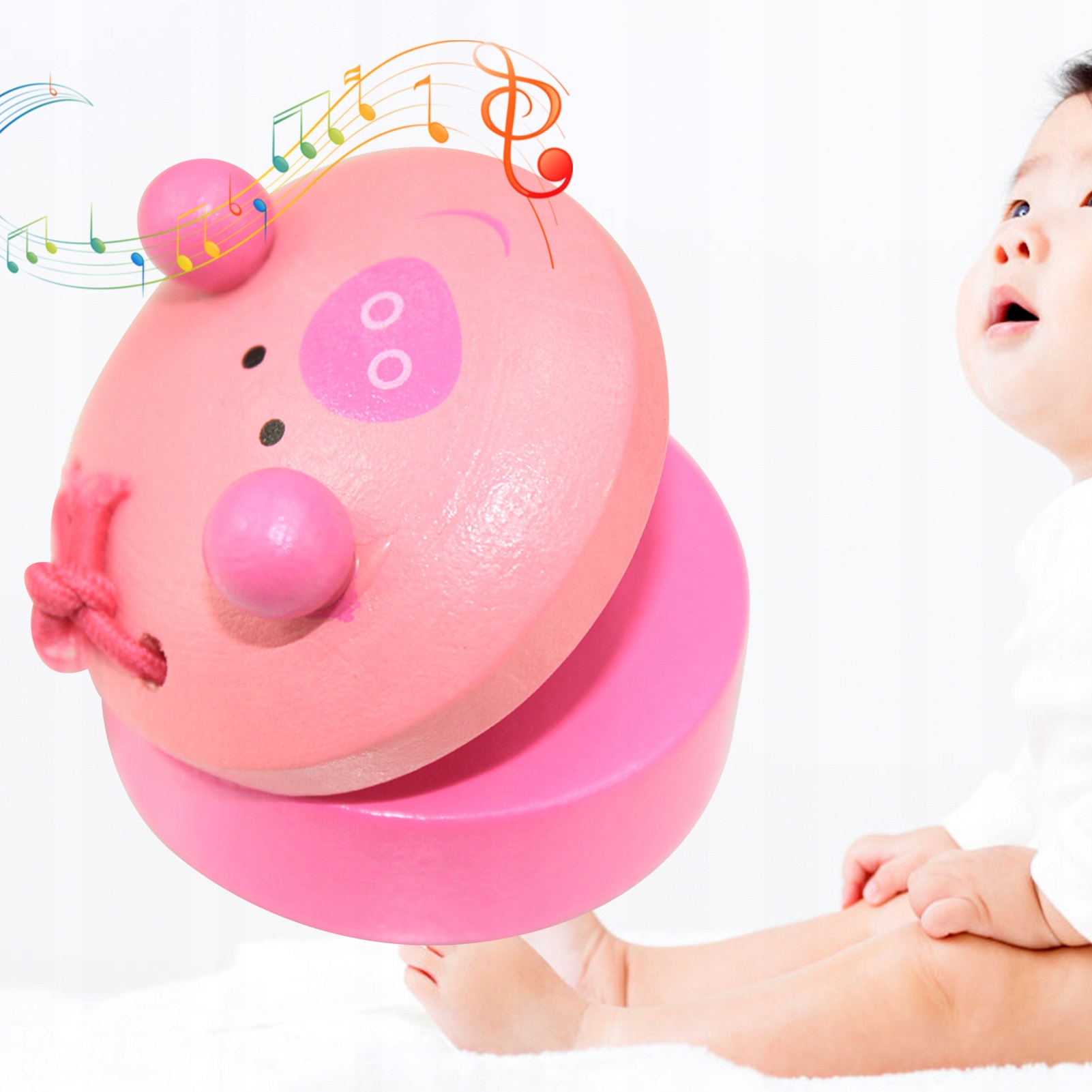 Дерев'яна пальчикова кастаньєта, візерунок тварин, кастаньєти, музичні інструменти, іграшки для дошкільної освіти, рожева