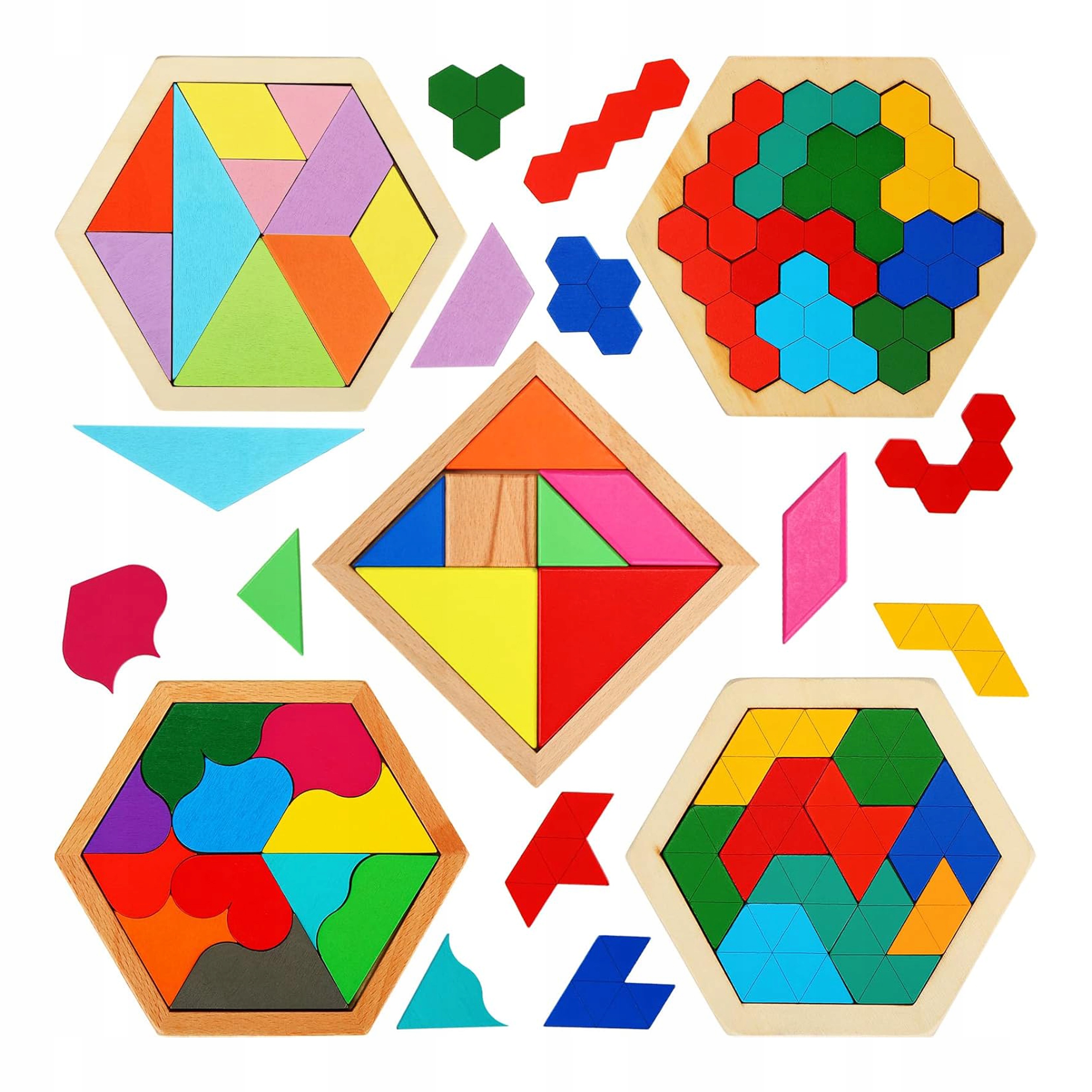 Дерев'яні пазли танграм гра-головоломка колодки для дітей 5 шт.
