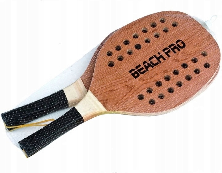 Тенісний набір Манделлі на пляжі (Sport1) - пара суцільних дерев’яних "tenis pro" з м'ячем. Ідеальний вибір для пляжу, для саду чи відпустки - гарантує активну та повну веселої розваги для всієї родини.