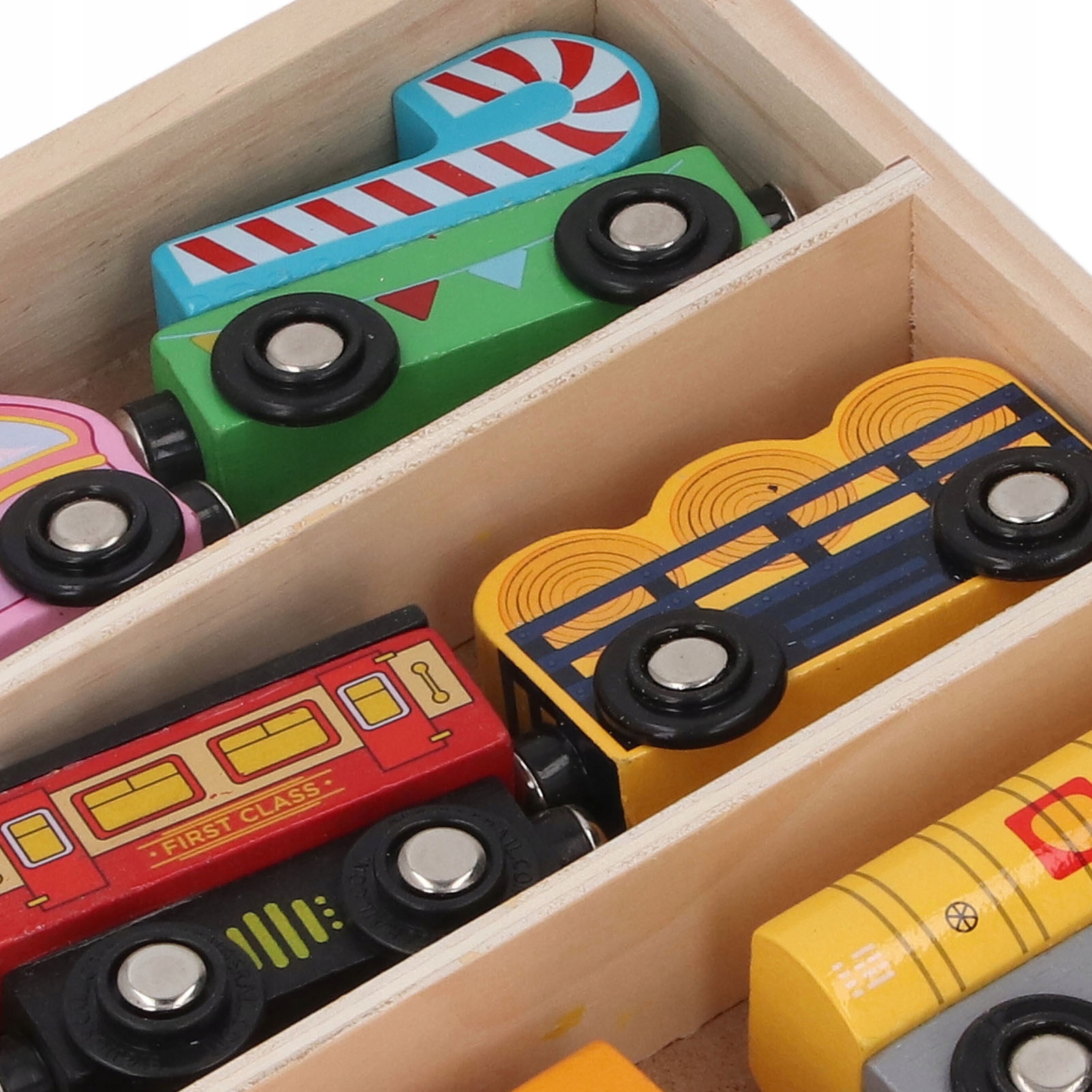 2. Дерев’яна коробка: іграшки з треками упаковані в дерев’яну коробку, яка є безпечною та довговічною, щоб батьки могли бути впевнені, що їхні діти зможуть грати з ними у повсякденному житті.