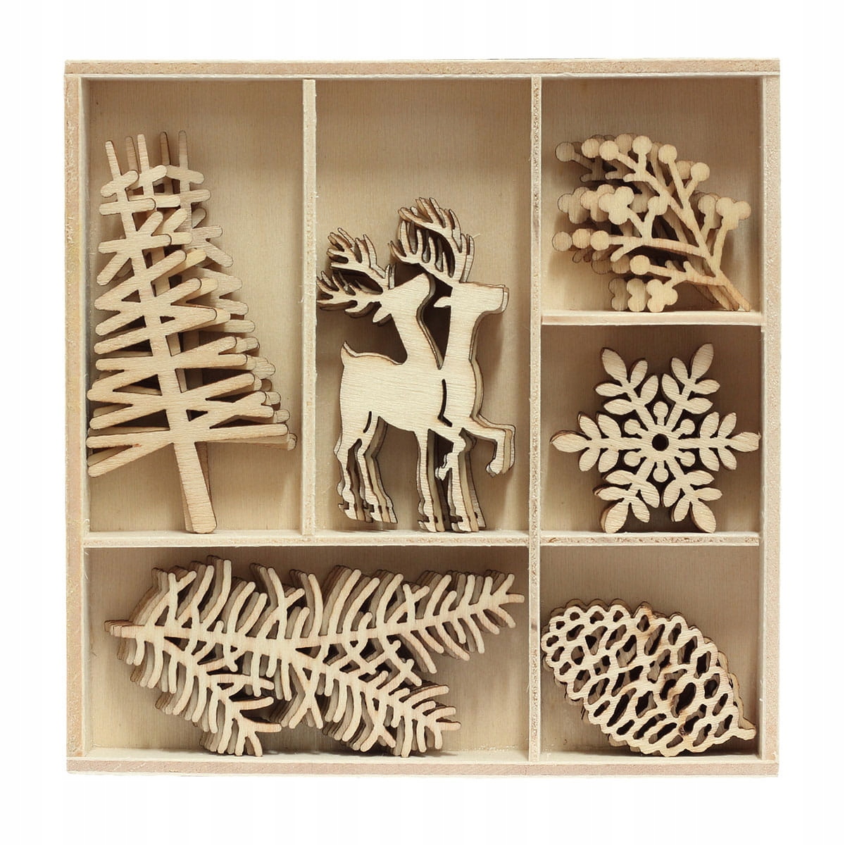 Дерев'яні прикраси ЯЛИНКА та ОЛЕНЬ коробка 30 шт