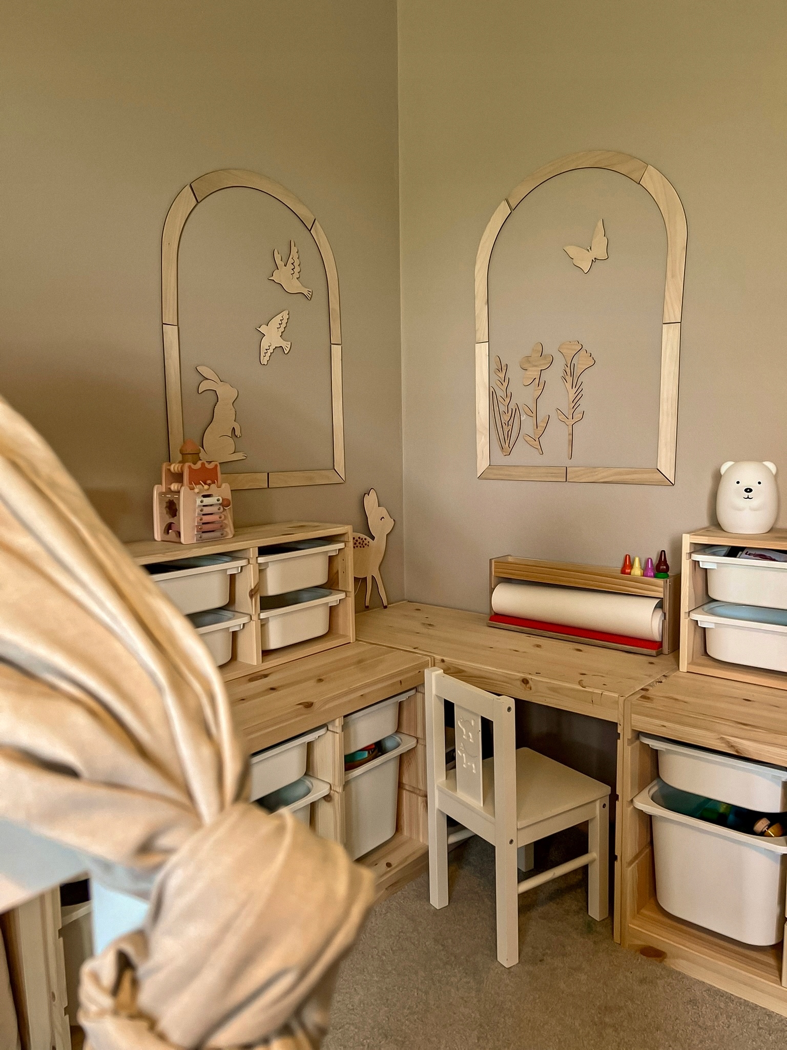 Чудова прикраса для кімнати вашої дитини, яка не тільки гарно прикрасить стіну, але, перш за все, створить ідеальну композицію для театральної гри та розширить уяву вашої дитини. У набір входять 2 великі напівкруглі рамки та набір декорацій, таких як польові квіти, пташки, метелики та зайчик.