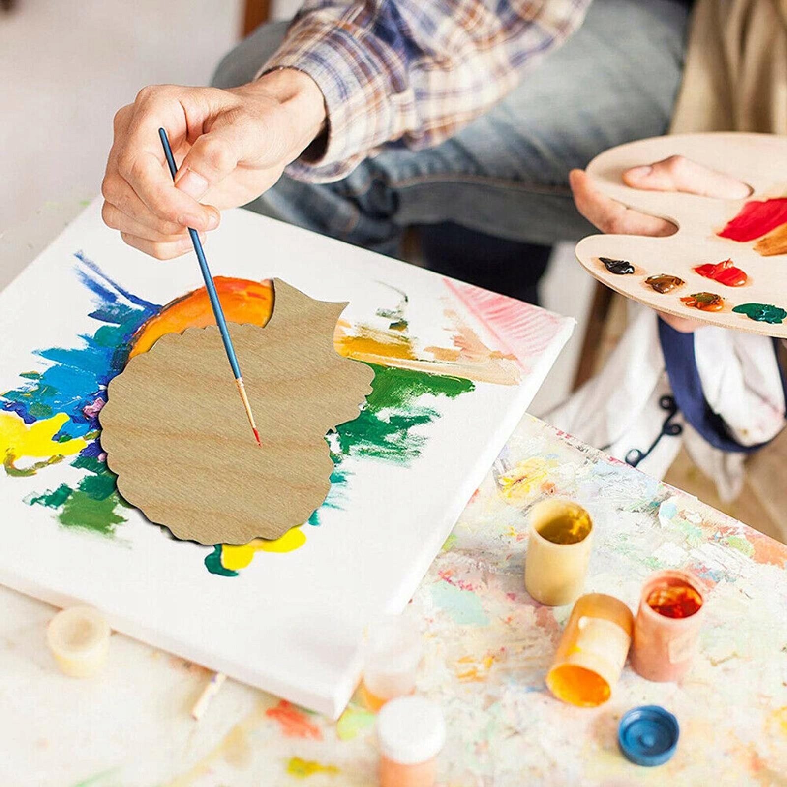 Ці дерев’яні вирізки мають гладкі поверхні, не потребують шліфування і готові до фарбування відповідно до вашої творчої уяви. Техніка Використовуйте фарбу, маркери, клей, блиск, мозаїку, рідку акрилову фарбу, папір, стрічку та вініл.